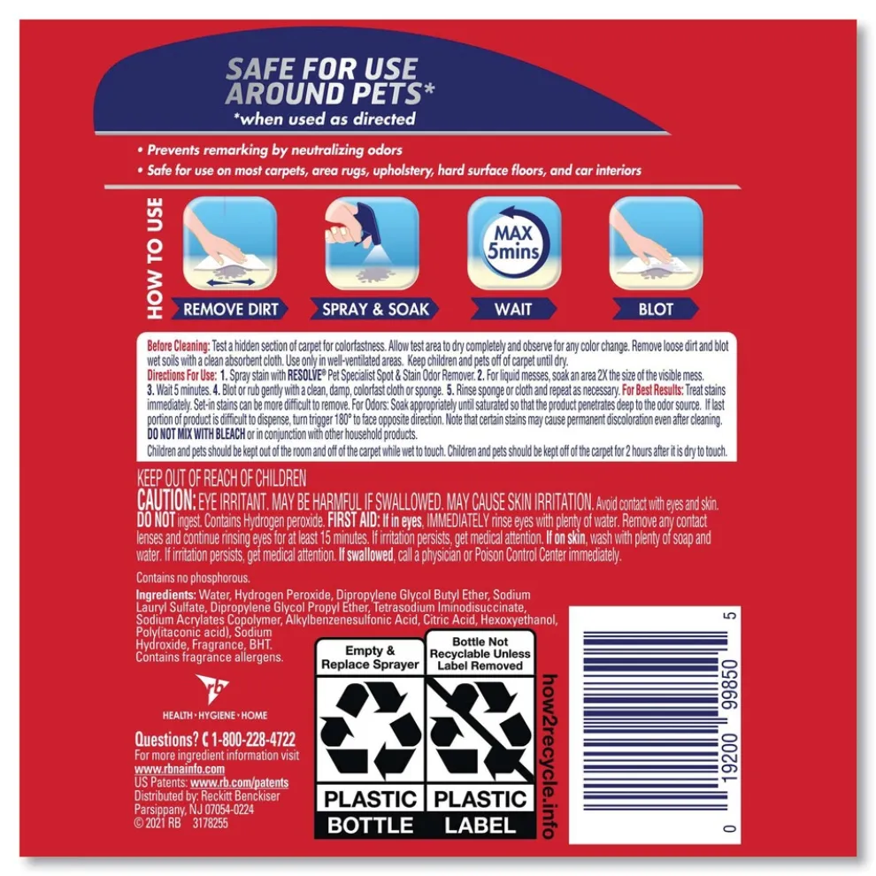 RESOLVE 19200-99850 Pet Specialist 32 oz. Trigger Spray Bottle Stain and Odor Remover – Citrus (12/Carton)