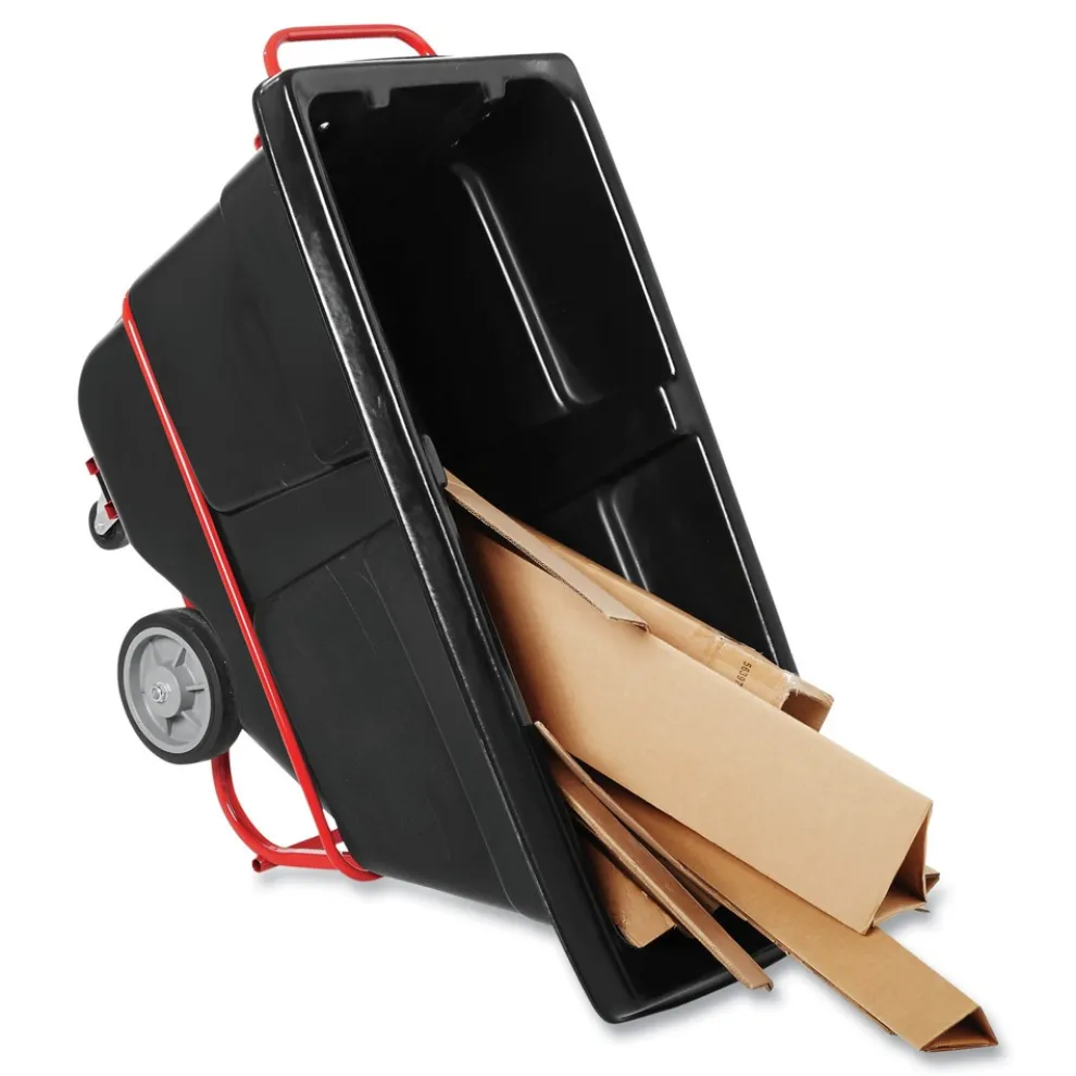 Wheels provide easy push-pull maneuverability, while the truck design allows controlled dumping by one person
