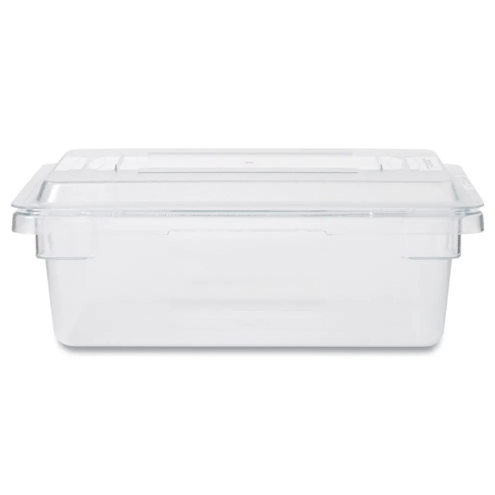 The Rubbermaid Commercial Food Storage Lid for Food Tote Box helps reduce food spoilage costs. The food storage container lid is a tight-fitting, snap-on lid with stacking ribs. This bulk food storage container lid reduces risk of cross-contamination, secures storage while stacked, and can be used as tray when displayed upside down.