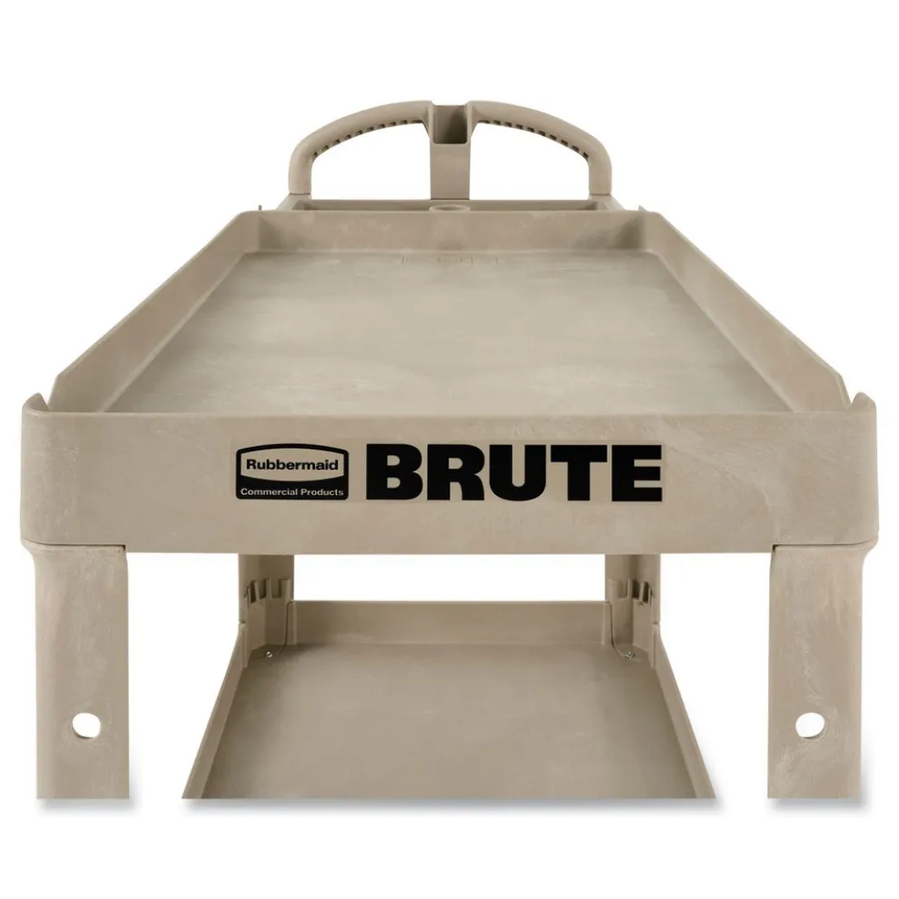 Rubbermaid Commercial FG450088BEIG 17.13 in. x 38.5 in. x 38.88 in. 500 lbs. Capacity 2 Shelves Plastic Heavy-Duty Utility Cart with Lipped Shelves – Beige