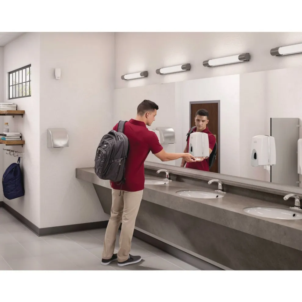 Discreet, decorative dispenser enhances nearly any public space: washrooms, restaurants, offices and more. Innovative unit runs on a hydrogen fuel cell; no batteries or plug-in electrical source required. Each refill is designed for continuous use operation for up to 60 days.