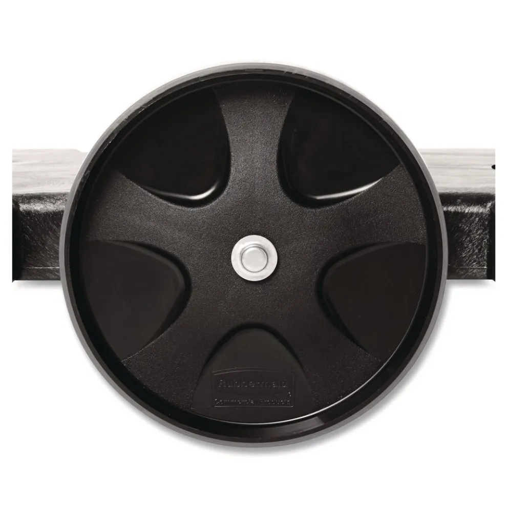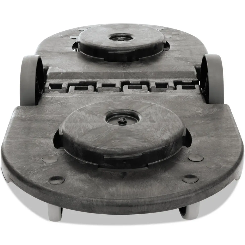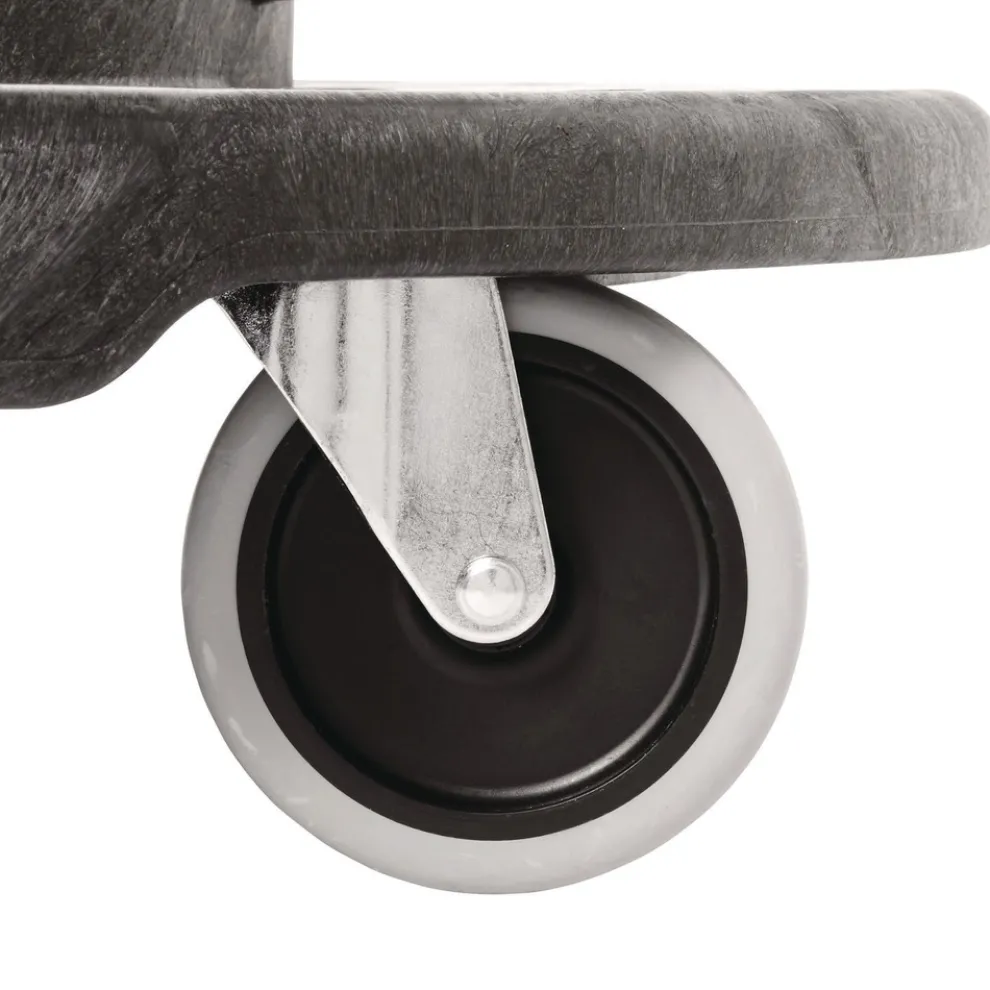 The Rubbermaid Commercial BRUTE Tandem Trash Can Dolly quickly and easily transports two garbage cans throughout any facility. The dual platform dolly allows different size BRUTE receptacles to be attached to the garbage can dolly at once. To save space, the garbage cans can also be nested when one half of the dolly is folded upright. The dependable, heavy-duty 8 in. swivel casters provide enhanced mobility through busy work areas or tight spaces. The unique center hinge design also features fixed wheels for smooth transport. Easy to maneuver, this trash can dolly makes waste collection more efficient, saves time, and reduces worker strain from heavy loads.