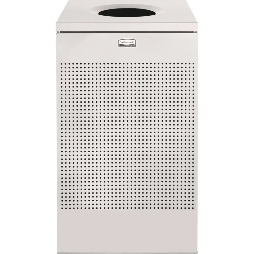 Offers functional litter control in an elegant design. The garbage can has an open top with a vinyl trimmed disposal opening. The trash can is made of fire-safe steel. Its wall-hugging design is ideal for areas where looks are important and space is limited. The lift-off trash can body makes it easier to empty and has a rigid plastic liner that will not leak.