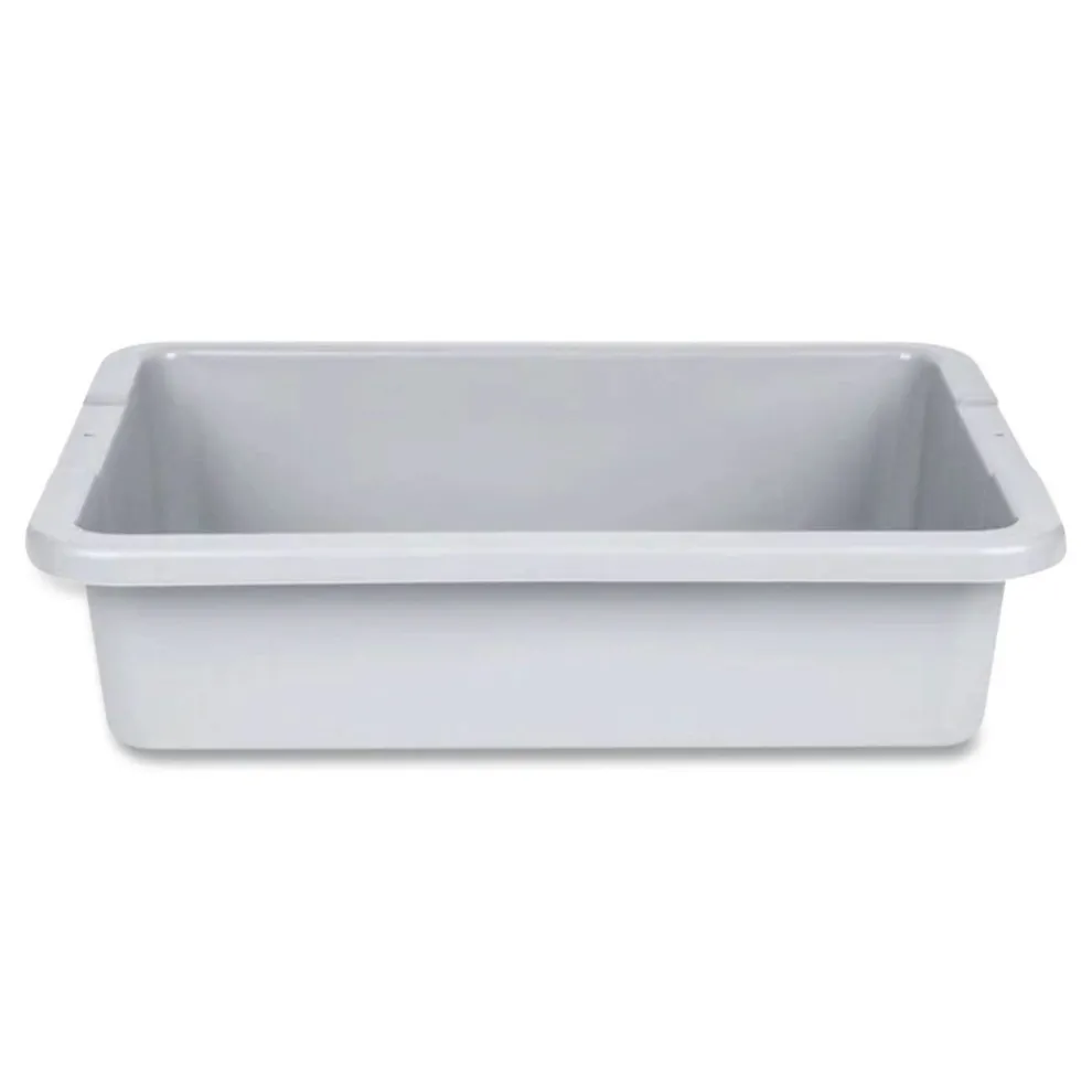 Undivided bus box is constructed of heavy-duty, commercial grade plastic. This utility box also has reinforced handles and bottom, as well as ribs, for extra strength. Featuring rounded corners for easy cleaning, the bus box is ideal for dishwashing, hotels, bars, and restaurants. NSF Std. #2 certified and safe for commercial dishwashers.