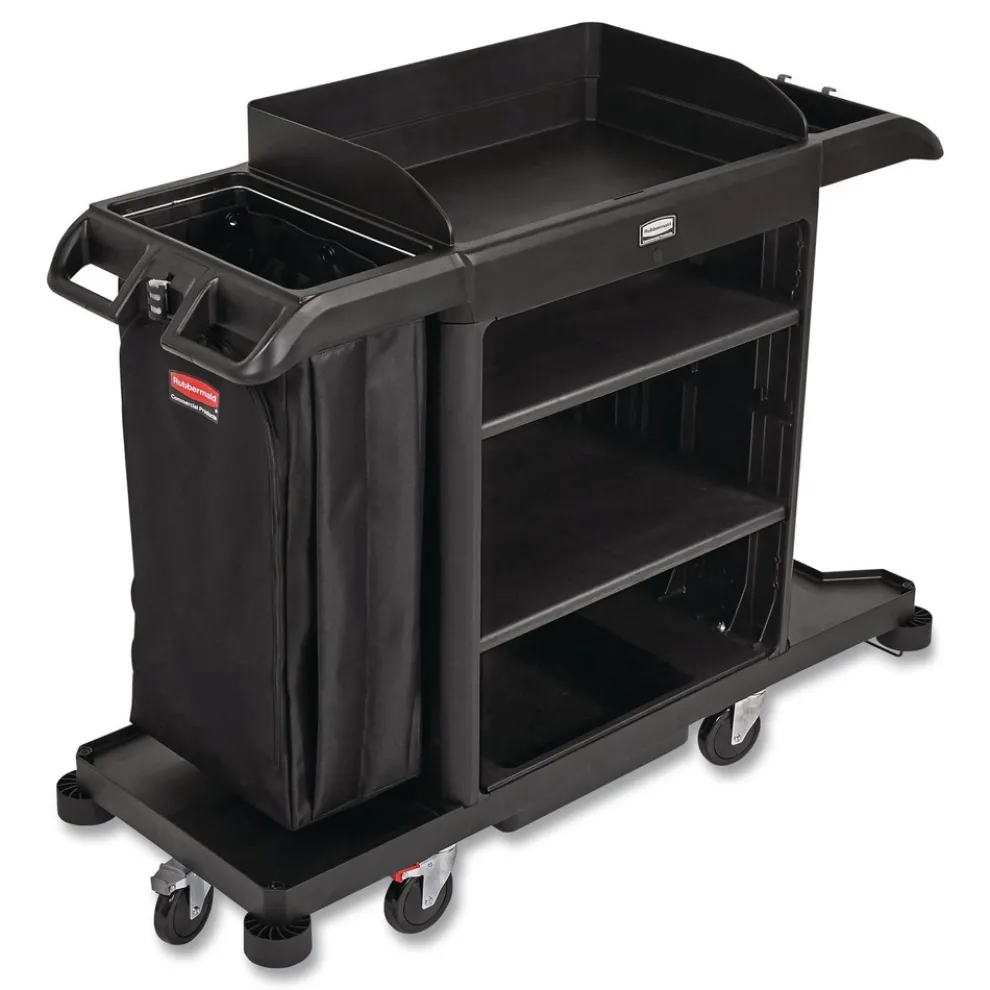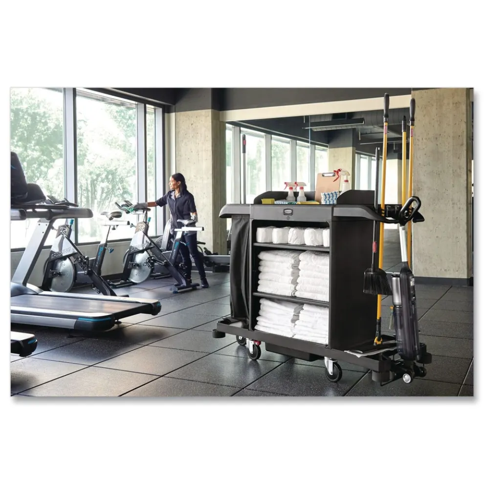 Rubbermaid Commercial 2202581 24.4 in. x 62.4 in. x 49 in. Full-Size 3-Shelf Housekeeping Cart – Black
