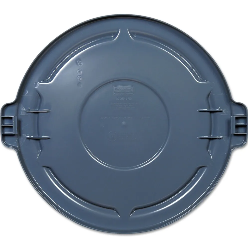 The Rubbermaid Commercial BRUTE Round Trash Can Lid fits Rubbermaid Commercial BRUTE trash cans (sold separately). All-plastic, professional-grade trash can construction will not rust, chip, or peel, and resists dents. The strong, snap-on lids enable secure, stable stacking.