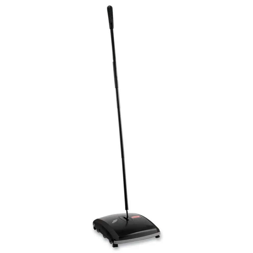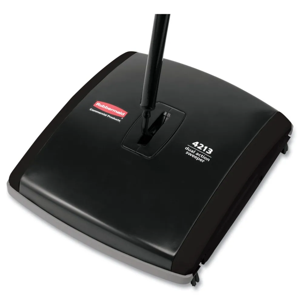 The Rubbermaid Commercial Products Dual Action Mechanical Carpet Sweeper contains 2 types of bristle brush rolls to collect dust, dirt and debris from carpets. This carpet sweeper is made from durable galvanized steel and ABS plastic and works well for bare floors and low-pile carpets. Efficient 7.5 in. sweep path, plus rubber bumper to protect furniture and walls.