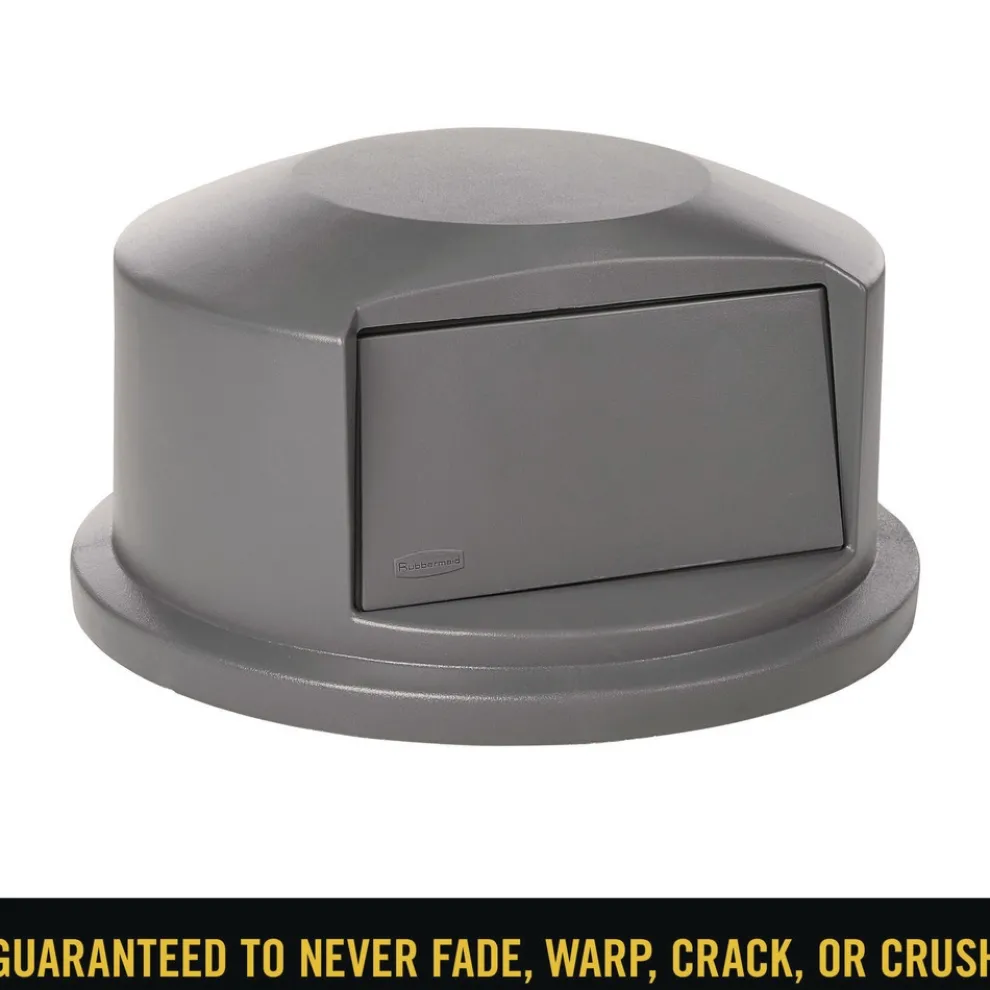 Rubbermaid Commercial FG264788GRAY 24.81 in. Diameter x 12.63 in. Round BRUTE Dome Top Receptacle Push Door for 44 Gallon Containers – Gray