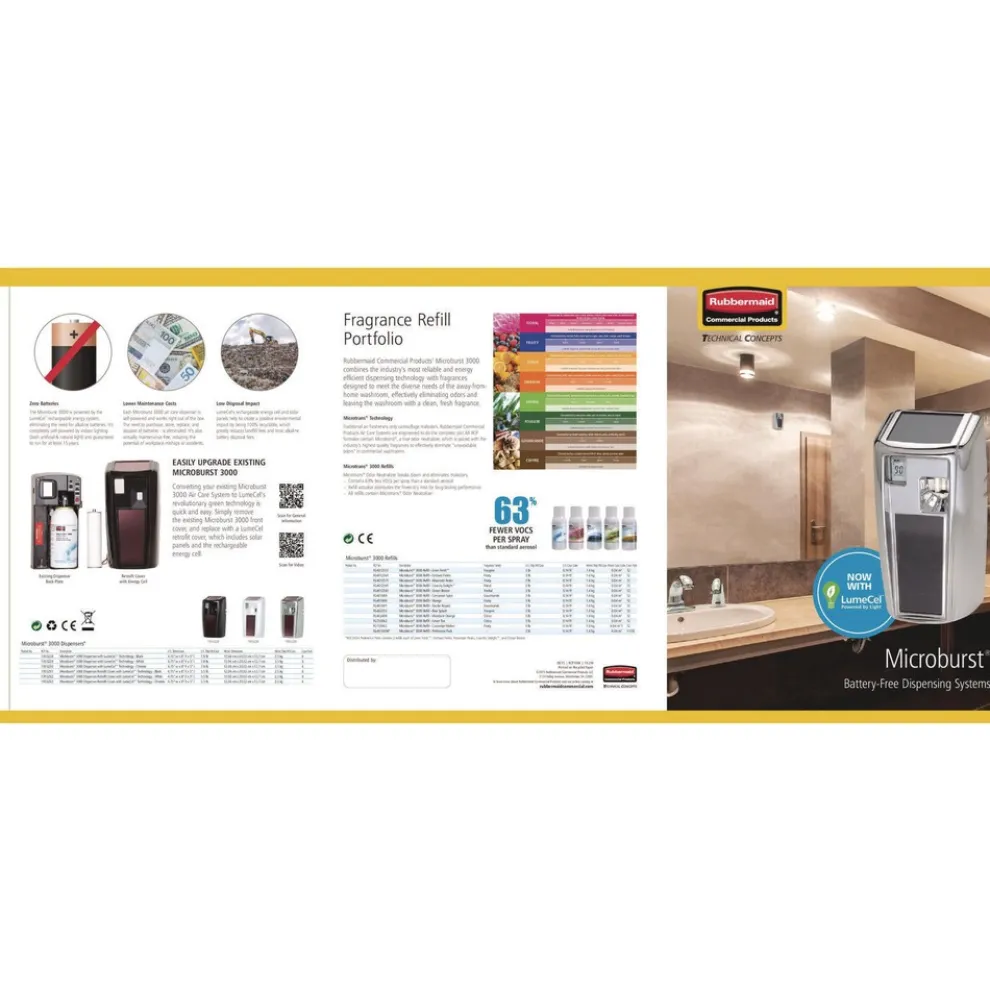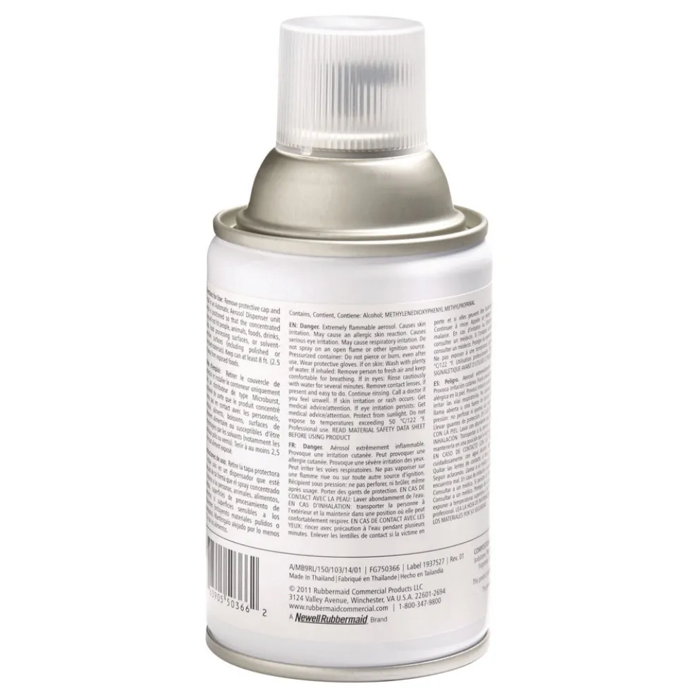 Specialized odor neutralizers break down and eliminate offensive odors, while quickly evaporating, alcohol-based fragrances keep your area pleasantly scented. Patented release actuator distributes a fine, dry mist, ensuring maximum dispersal. Long-lasting refill is good for up to 3,000 metered releases when used with Microburst® 3000 dispensers.
