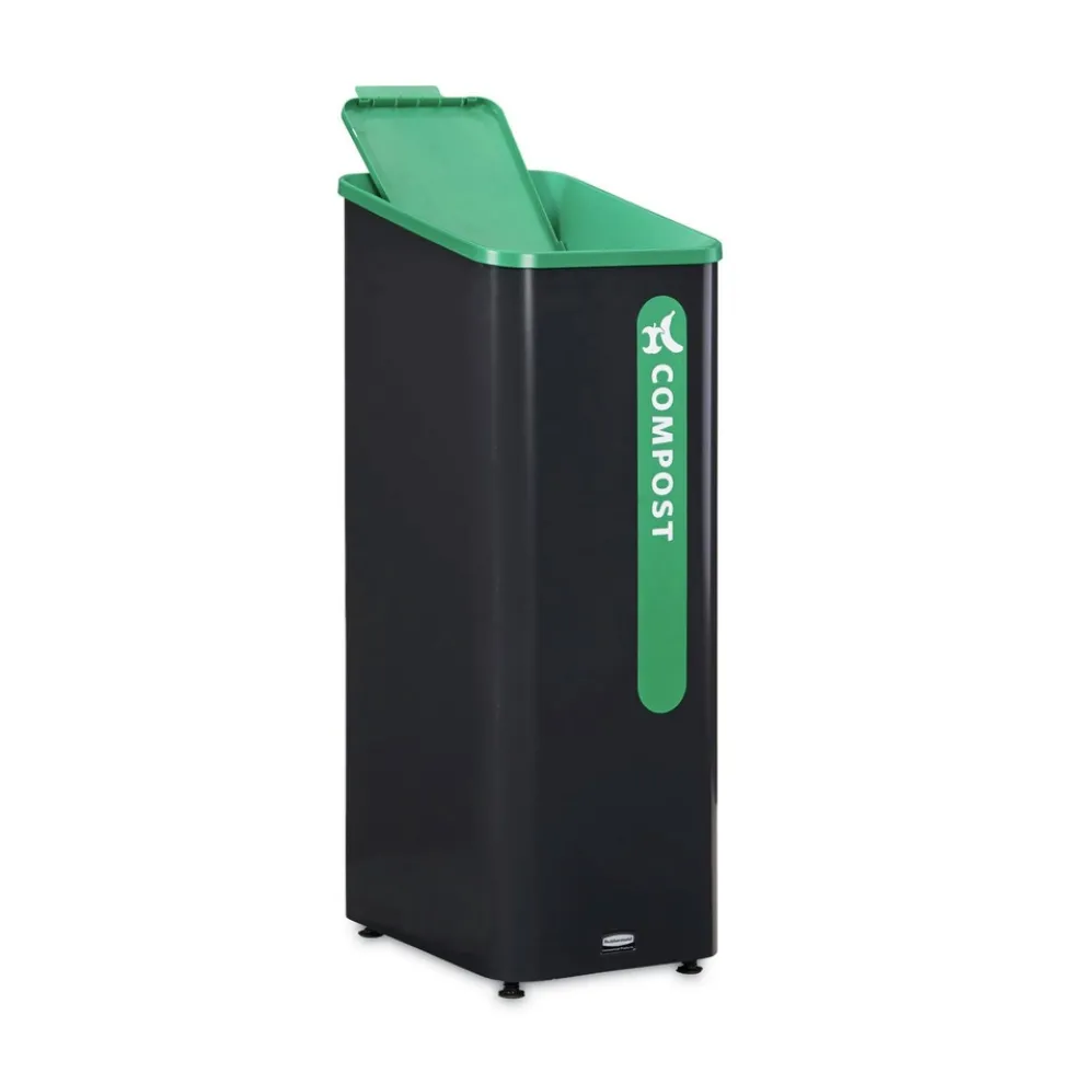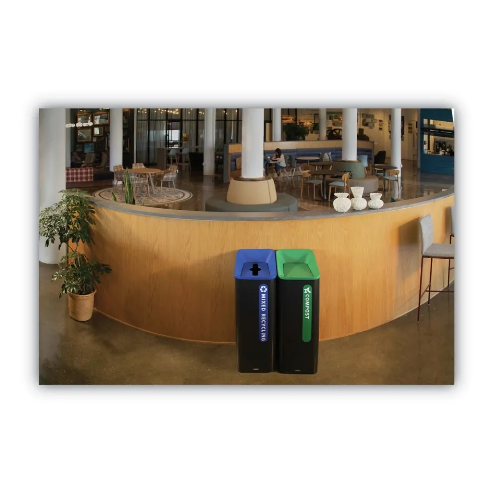 Rubbermaid Commercial Products Sustain Containers are a decorative and adaptable recycling solution made to improve your facility’s sustainability compliance. Modular system allows the container stations to be customized and grow with each recycling program’s needs. Restrictive waste stream openings and colored labels provide easy visual cues for patrons, making recycling easier and improving compliance with growing regulations.
