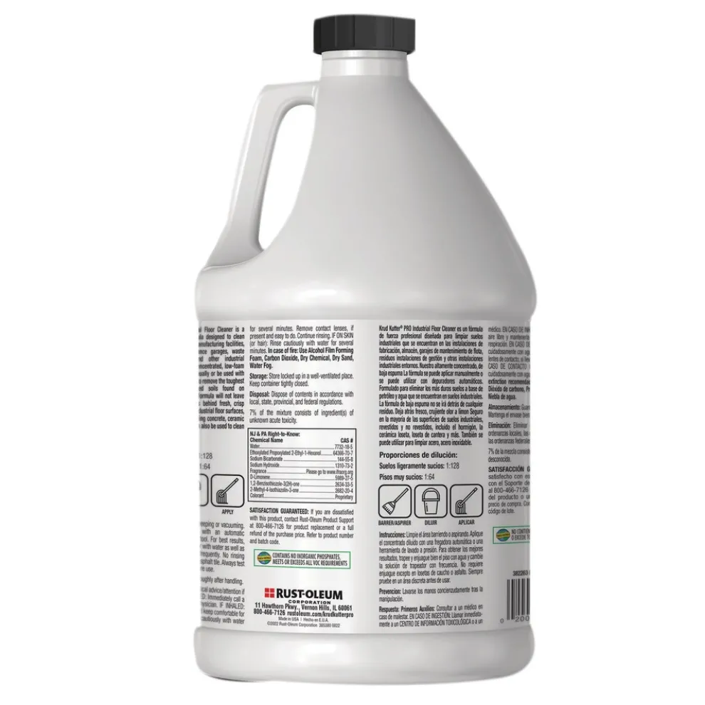Rust-Oleum Pro Heavy Duty Low Foam Floor Cleaner is a professional strength formula designed to clean industrial floors found in manufacturing facilities, waste management facilities, transportation maintenance facilities, warehouses and other industrial settings. The low foam formula is ideal for removing tough dirt, salt, grease and grime commonly found on industrial floors.