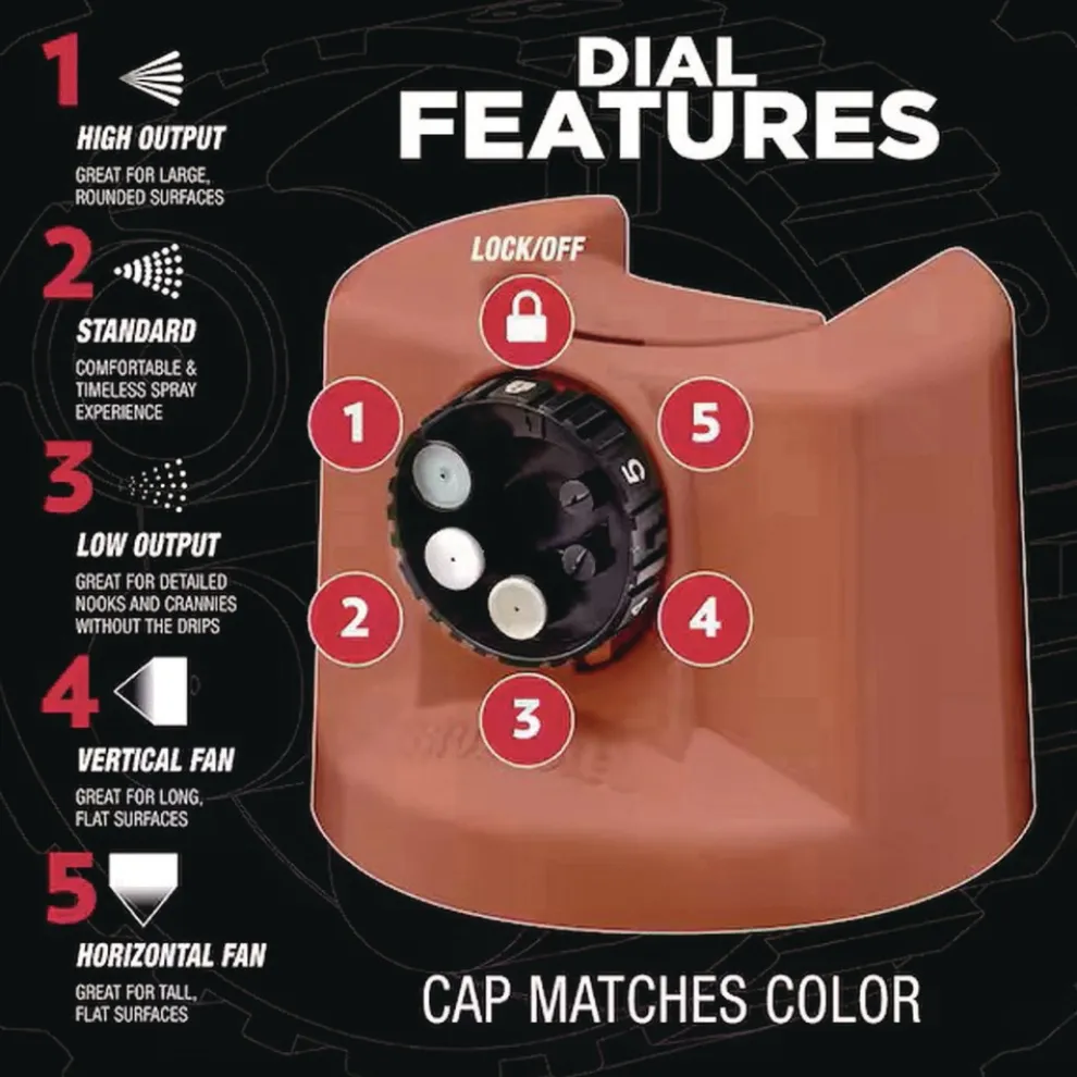 Rust-Oleum Stops Rust Custom Spray 5-in-1 allows you to choose between five different spray patterns for ultimate control and confidence over your next project. The advanced Stops Rust formula provides 30% greater corrosion resistance and color retention compared to original matching Stops Rust colors with standard tip. Ideal for ferrous, nonferrous metal and wood surfaces. Not for use on galvanized metal.