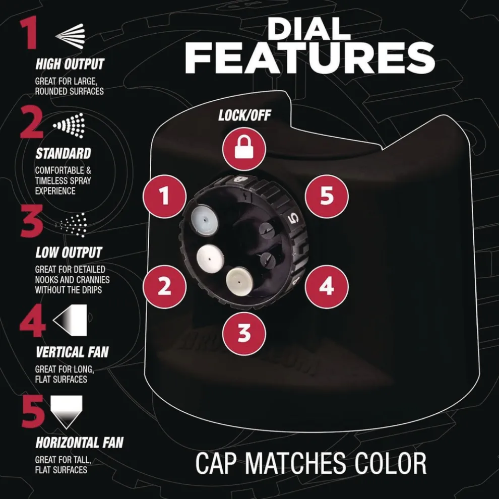 Rust-Oleum Stops Rust Custom Spray 5-in-1 allows you to choose between five different spray patterns for ultimate control and confidence over your next project. The advanced Stops Rust formula provides 30% greater corrosion resistance and color retention compared to original matching Stops Rust colors with standard tip. Ideal for ferrous, nonferrous metal and wood surfaces. Not for use on galvanized metal.