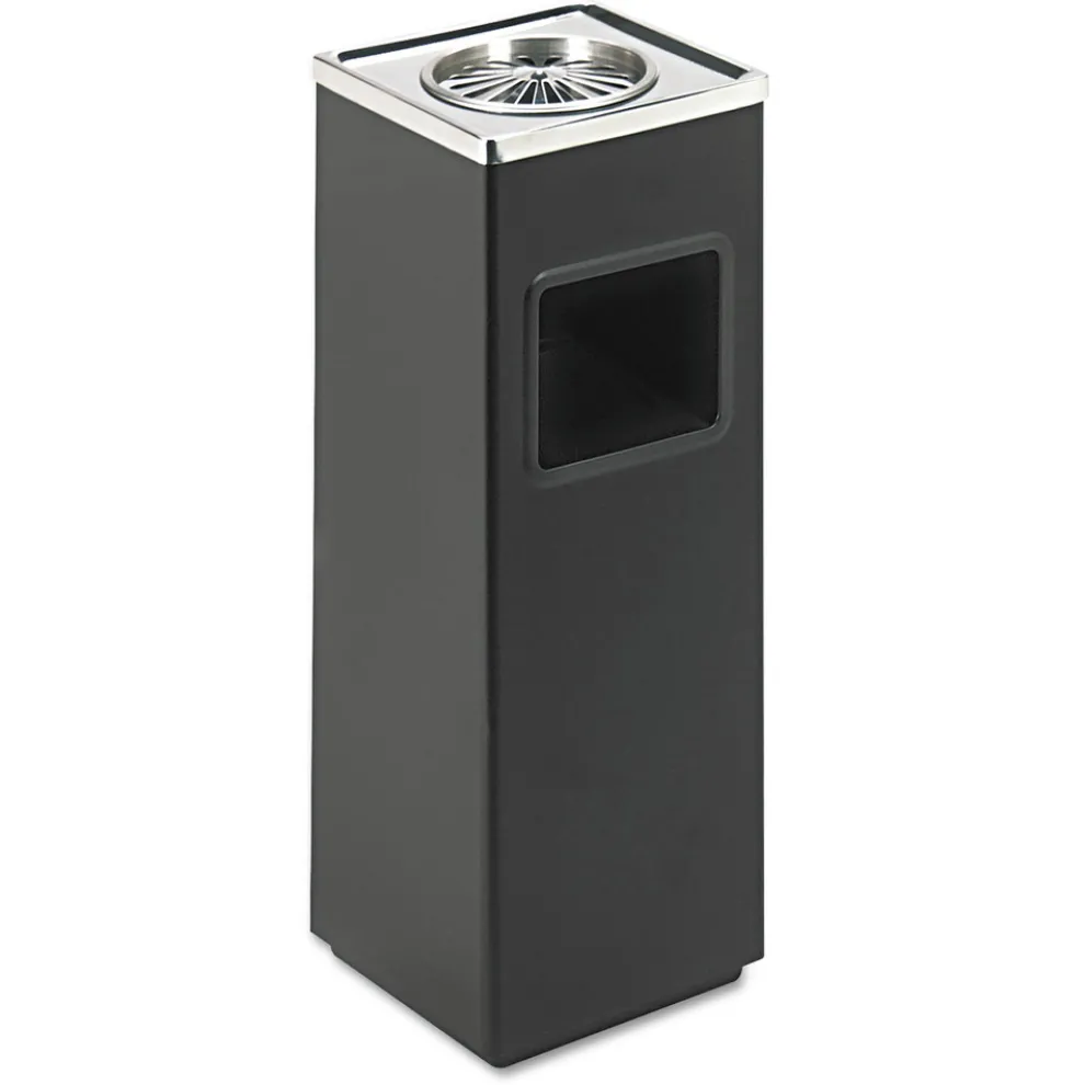 Safco 9696BL 3 gal. Stainless Steel Square Ash ‘N’ Trash Sandless Urn – Black