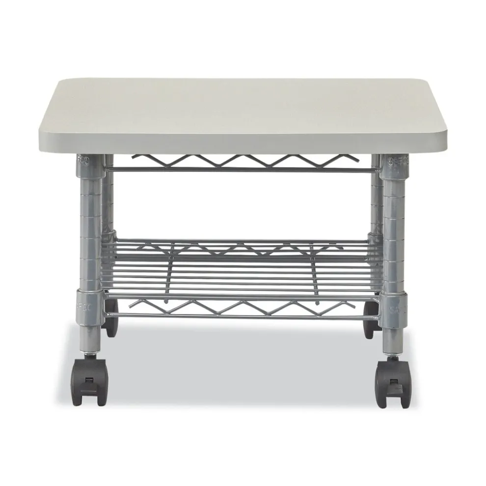 Large surface (19 in. W x 16 in. D) provides ample space for most printers and fax machines. Sturdy steel wire shelf is ideal for storing extra paper or supplies. Fits under most work surfaces to save valuable floor space. Powder coat finish for durability and mobile on four casters (two locking). Easy assembly, no tools required.