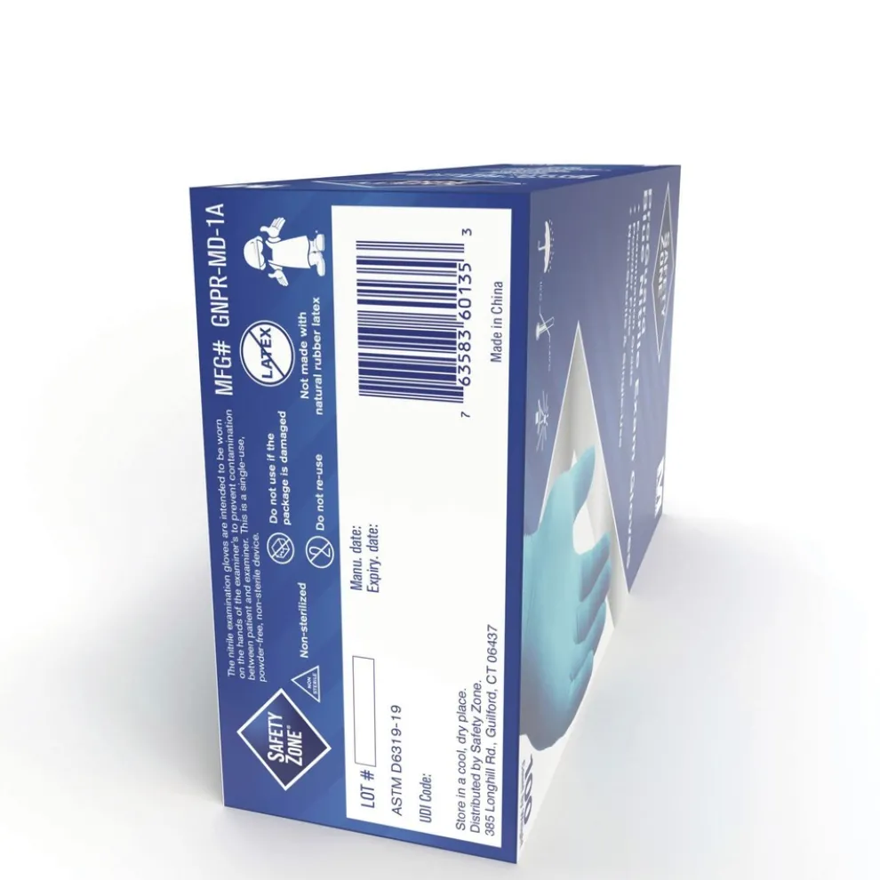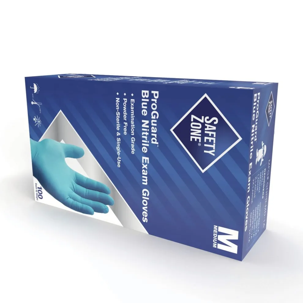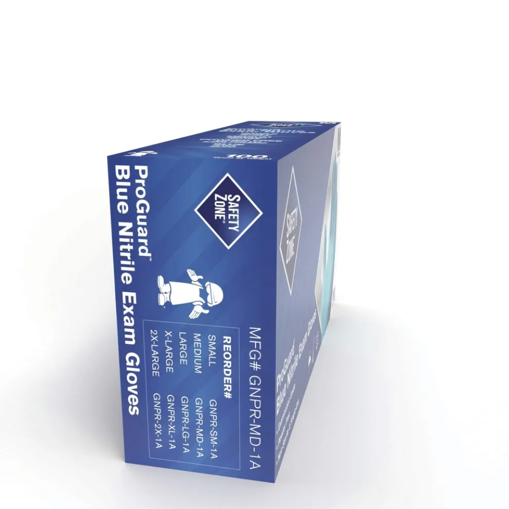 Safety Zone GNPR-MD-1A ProGuard Nitrile Gloves, Powder-Free, 3 mil, Blue, Medium, 1,000/Carton