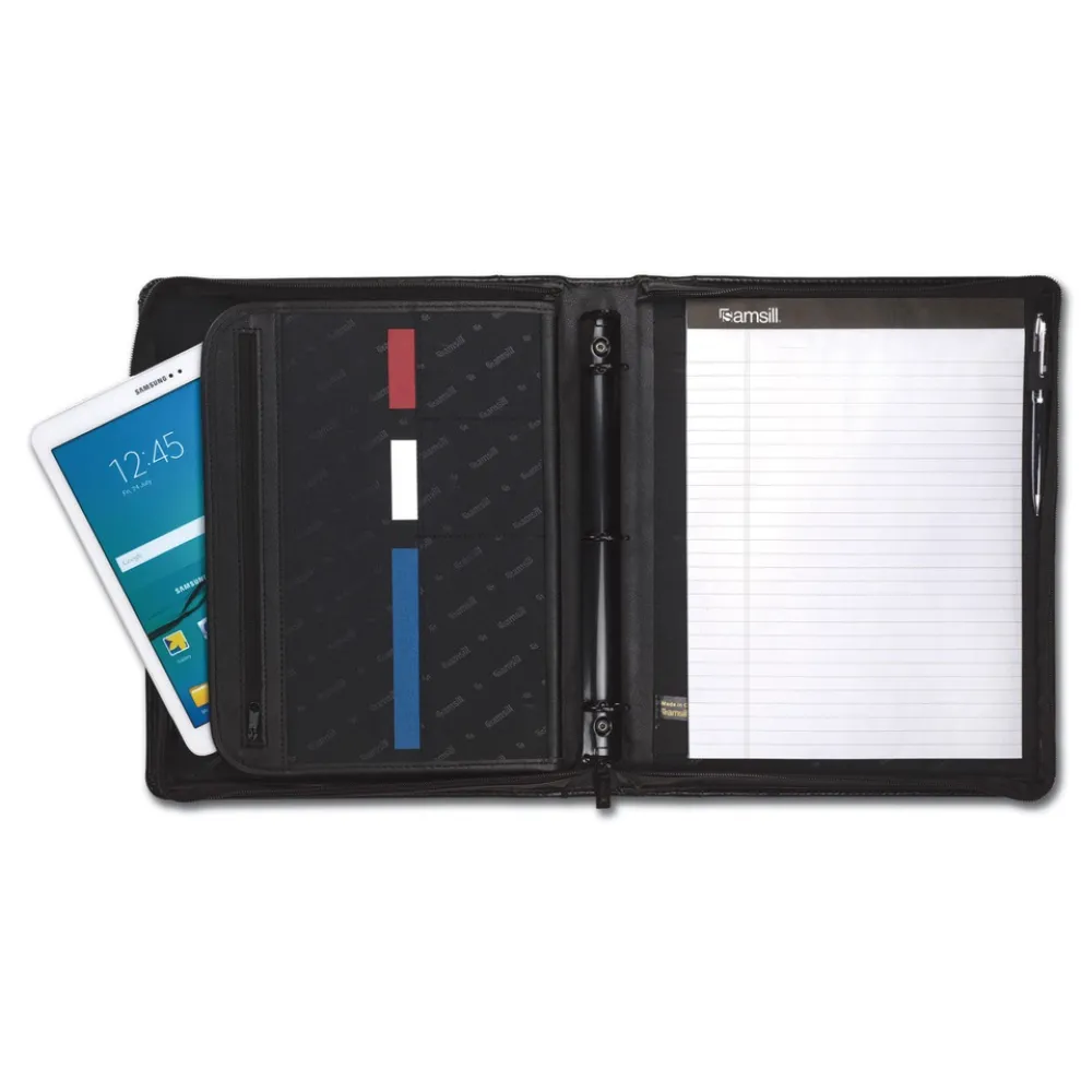 Samsill 15540 11 in. x 13 1/2 in. 2-Part 1 in. Cap Leather Multi-Ring Zippered Portfolio – Black
