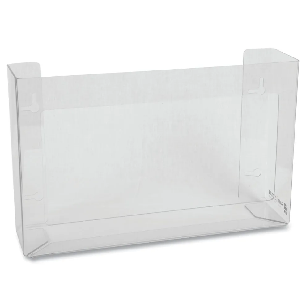 Disposable glove dispenser prevents boxes from becoming damaged or contaminated, and keep gloves sanitary and handy for use. Innovative spring-loaded “hug” design ensures a secure fit with glove boxes. Triple-box dispenser is ideal for holding multiple sizes of gloves. Gloves not included. High-grade, flexible Plexiglas® lets you view contents. With keyholes for easy wall mounting.