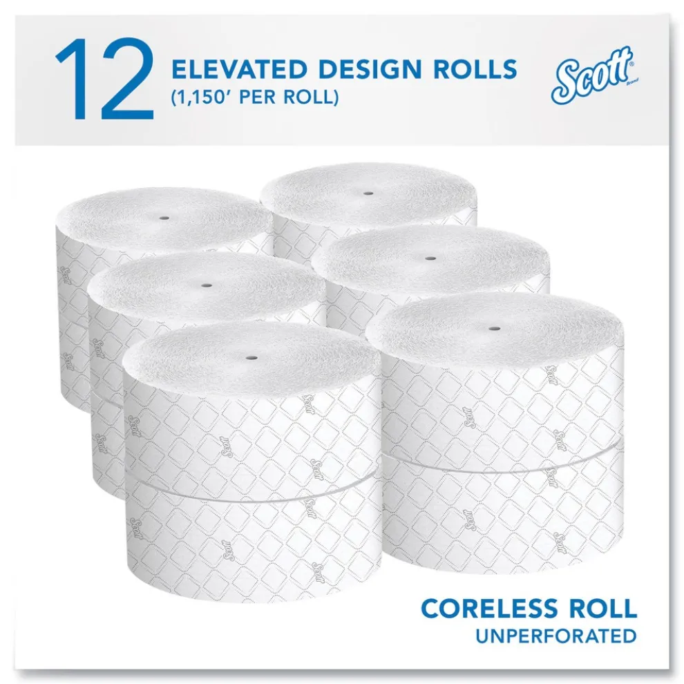 Scott 07006 Essential Coreless JRT Septic Safe 1150 ft. 2 Ply Tissues – White (12/Carton)