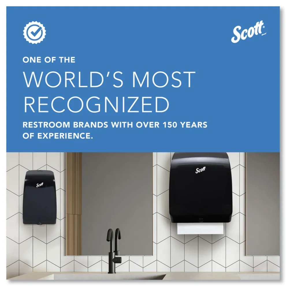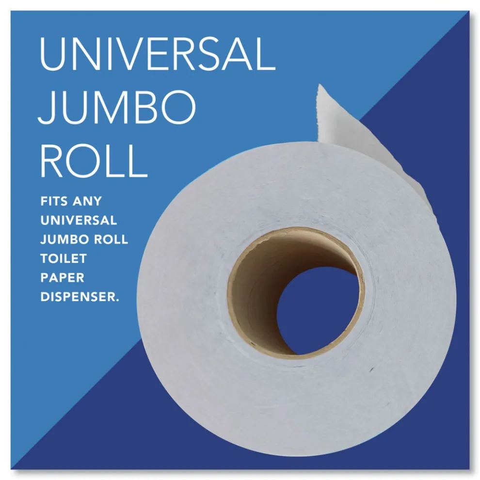 Scott Essential provides reliable balance of efficiency, performance, and value. You have better things to think about than changing your business’ toilet paper rolls. Scott Essential 1000 2-Ply Jumbo Toilet Paper Roll is a reliable and practical choice for your restroom. One roll of this high-capacity tissue is 1000 ft. long and equals nearly five standard rolls. This large toilet paper roll is designed to fit in dispensers made to accommodate two rolls, so the system is ideal for high-traffic areas, reducing run-outs and refills. In addition, it’s made with 100% recycled fiber (RF) and it meets EPA standards for minimum post-consumer waste content. Scott Essential Jumbo Roll 2-ply Bathroom Tissue offers great value and is the ideal balance of strength, absorbency, and economy. With Scott Essential Brand products, you get the quality and performance you can count on – and still stay within your budget.