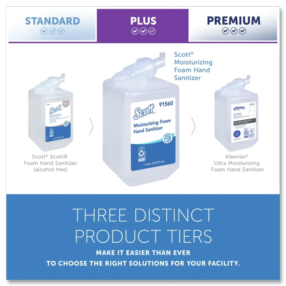 Scott Pro provides state of the art solutions to maximize productivity. Did you know that 98% of workers are affected by minor illnesses each year? Not only that, an estimated 80% of infectious illnesses are spread through hands and surfaces. You can help with Scott Pro Moisturizing Foam Hand Sanitizer. It effectively kills 99.99% of germs on hands in less than 15 seconds, all without the use of water. The clear 62% ethyl alcohol formula dispenses in luxury foam and has a refreshing cucumber fragrance. The antimicrobial formula contains moisturizers and conditioners to hydrate the skin. In the bulk refill cassette format, this no rinse hand sanitizer is designed to fit in compatible Scott Pro dispensers. Make it convenient for your employees and guests to use hand sanitizer when they visit your business!