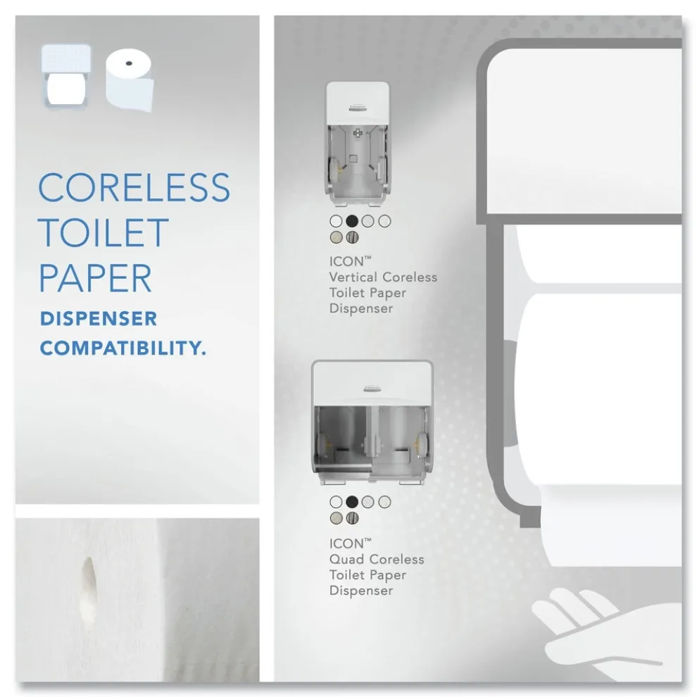 Can be used with the coreless Kimberly-Clark Professional toilet paper commercial dispenser