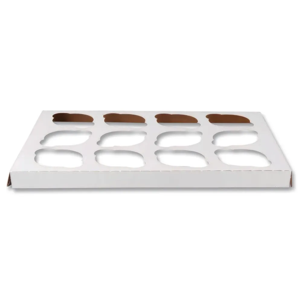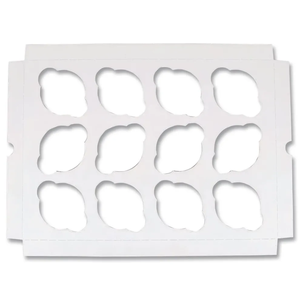 Convenient cupcake holders fit snugly into a variety of bakery boxes, making the perfect delivery system for adorable baked treats. Handy holders are reversible—the white side accommodates white bakery boxes, and reverses easily into a Kraft side. Sturdy paperboard construction makes them a great choice for taking delicate baked goods on the go. Easy to use inserts keep cute little cupcakes safe and sound.