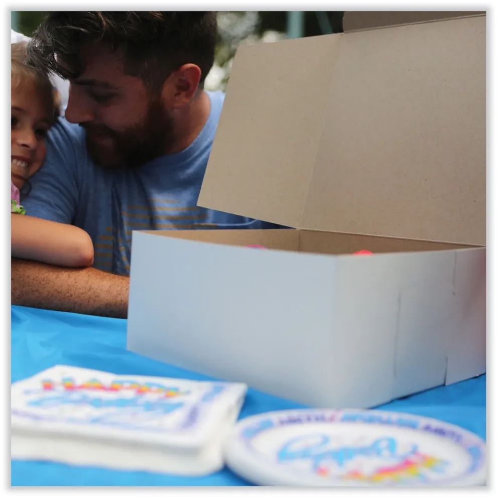 The bakery box is made from high quality paperboard that is white on the outside and Kraft on the inside. Perfect for cakes, pastries, pies and cupcakes. The white, clay-coated exterior accepts a printed logo or business name. Each one-piece box ships flat for transport and storage, but assembles easily into a folded carton with lock-corner closures and a tuck top to secure contents.