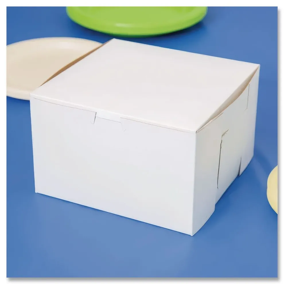 (100/Carton) 8 in. x 8 in. x 5 in. One-Piece Non-Window Paper Bakery Boxes – White – 09455