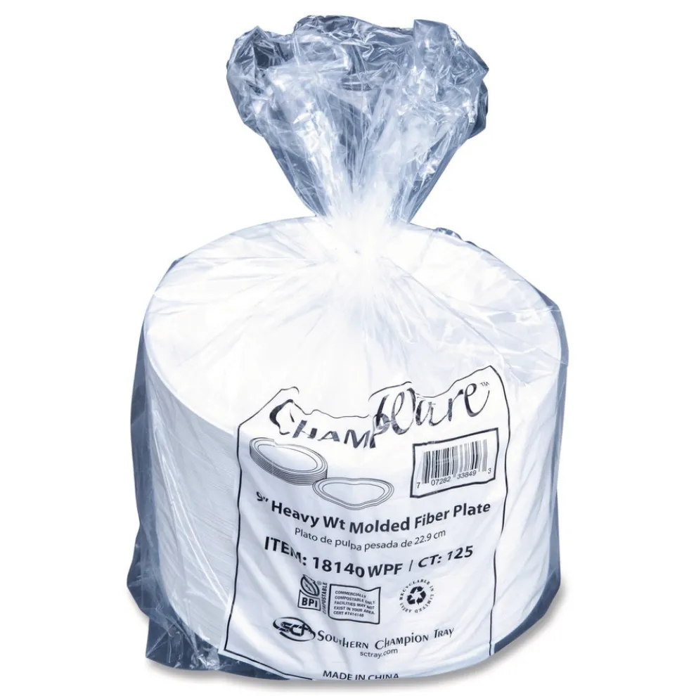 SCT 18140WPF ChampWare Molded Fiber Tableware, Molded Fiber Plate, 9-in dia, White, 125 Plates/Sleeve, 4 Sleeves/Carton