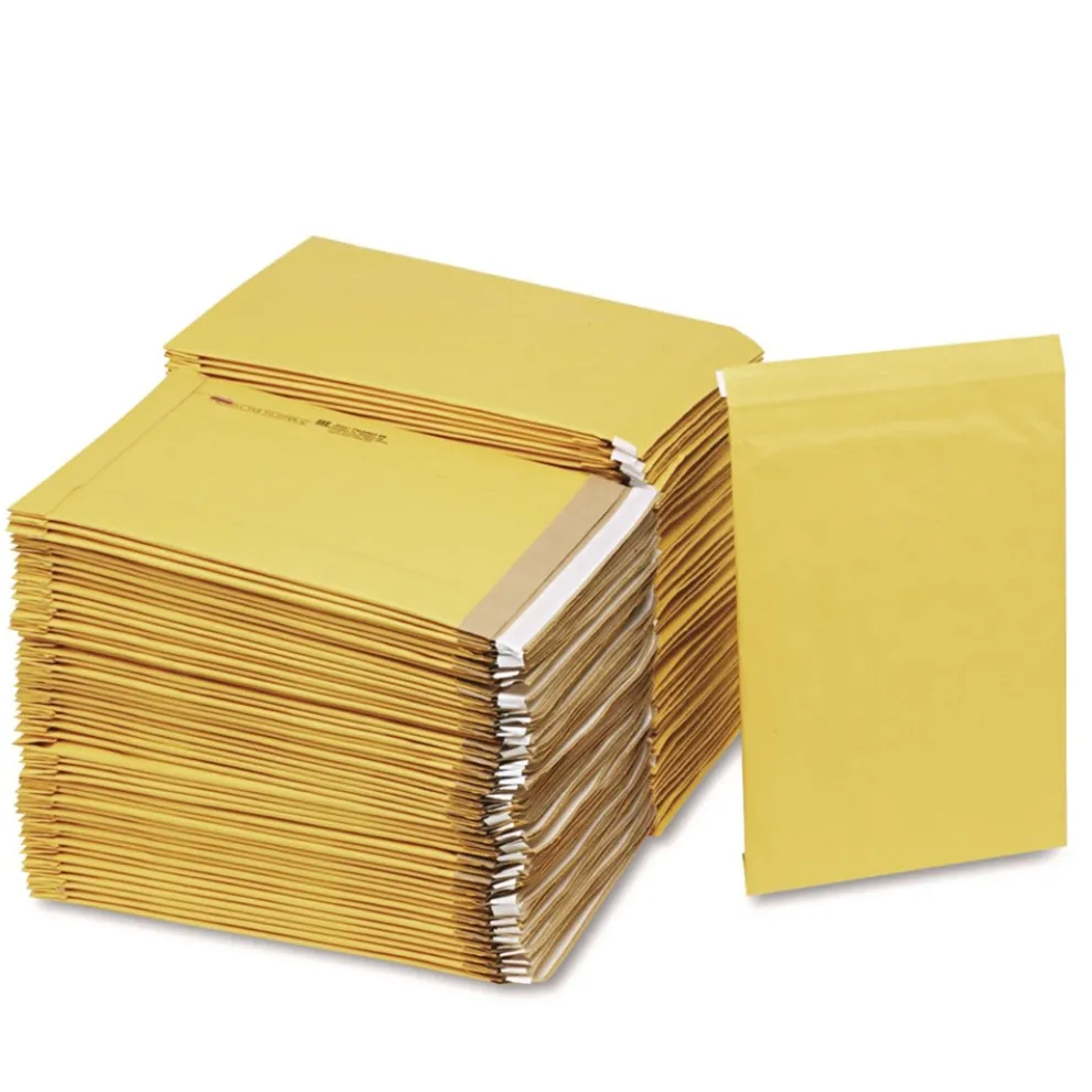 Heavy-duty Kraft mailer features double-folded corners and a double-glued bottom. Uniform padded interior keeps fragile contents snug and cushioned.