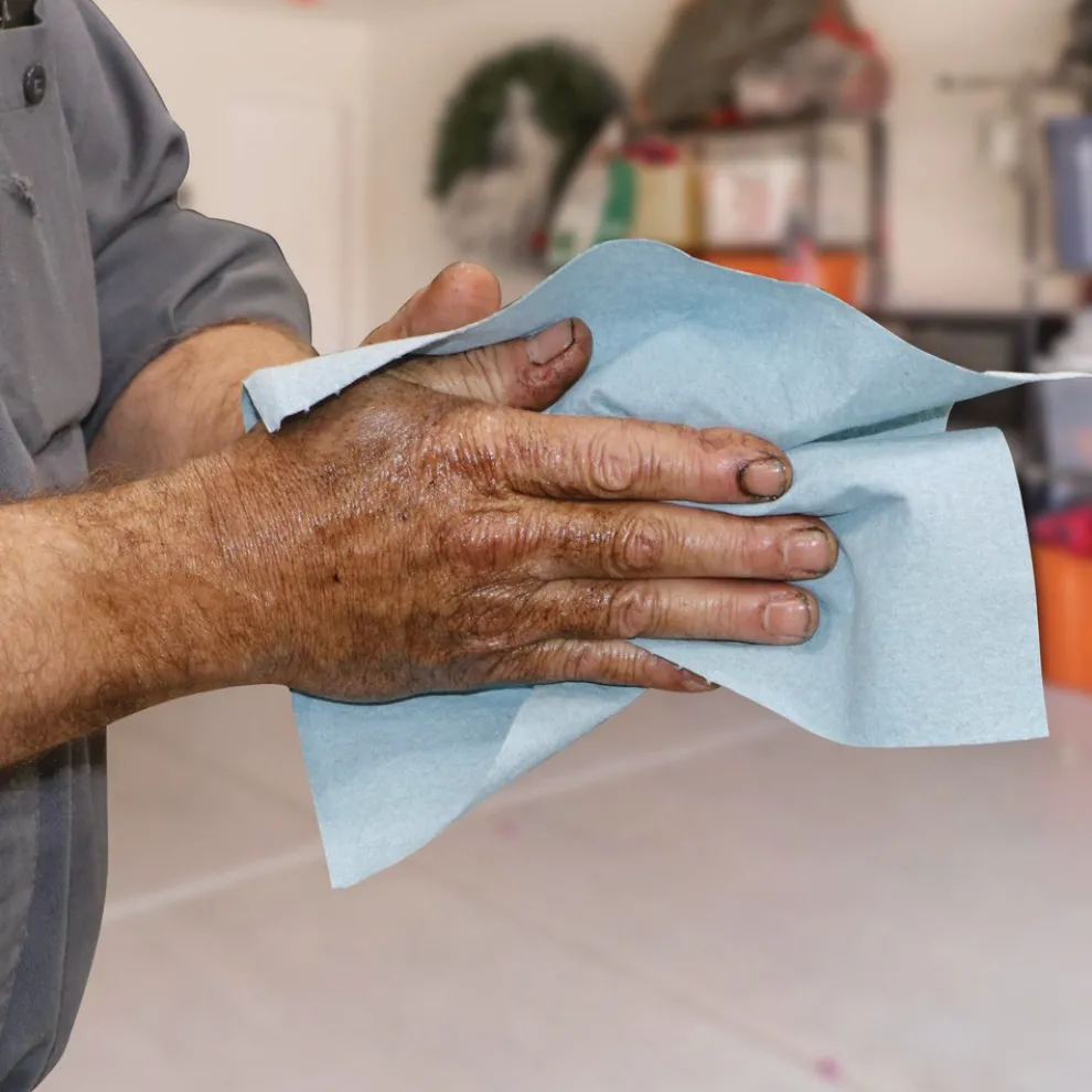 Tame the toughest grime with TOOLBOX Shop Towels. These strong blue shop towels handle grease, oil, and whatever else your shop, garage, or home throws at them. TOOLBOX shop towels stay strong, even when wet.