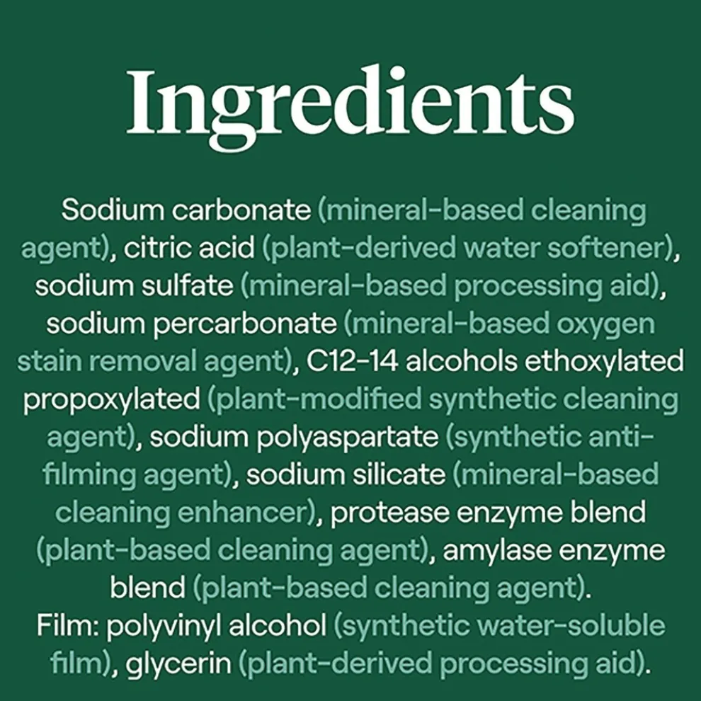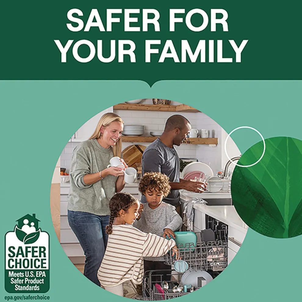No mess, no worries, no residue. Easy-to-use packs give the perfect amount of grease-fighting power for a total clean, leaving no iffy scents behind. Simply place one single-use pack into dishwasher to remove grease, grime and even dried, stuck-on food. Enzyme-rich formula cleans without phosphates or chlorine. Free & Clear of dyes and fragrances. Scent-free and a natural choice for those sensitive to scents.