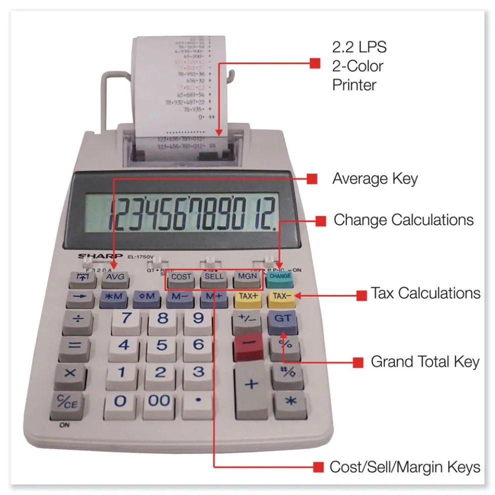 Sharp EL1750V 2 Lines/Sec Black/Red Color Printing Calculator