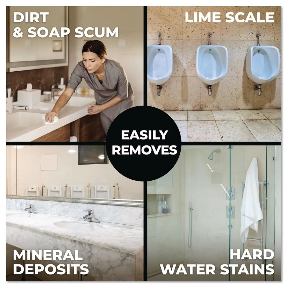 Effectively removes dirt, lime scale, mineral deposits, hard water stains, soap scum, light rust and oxidation