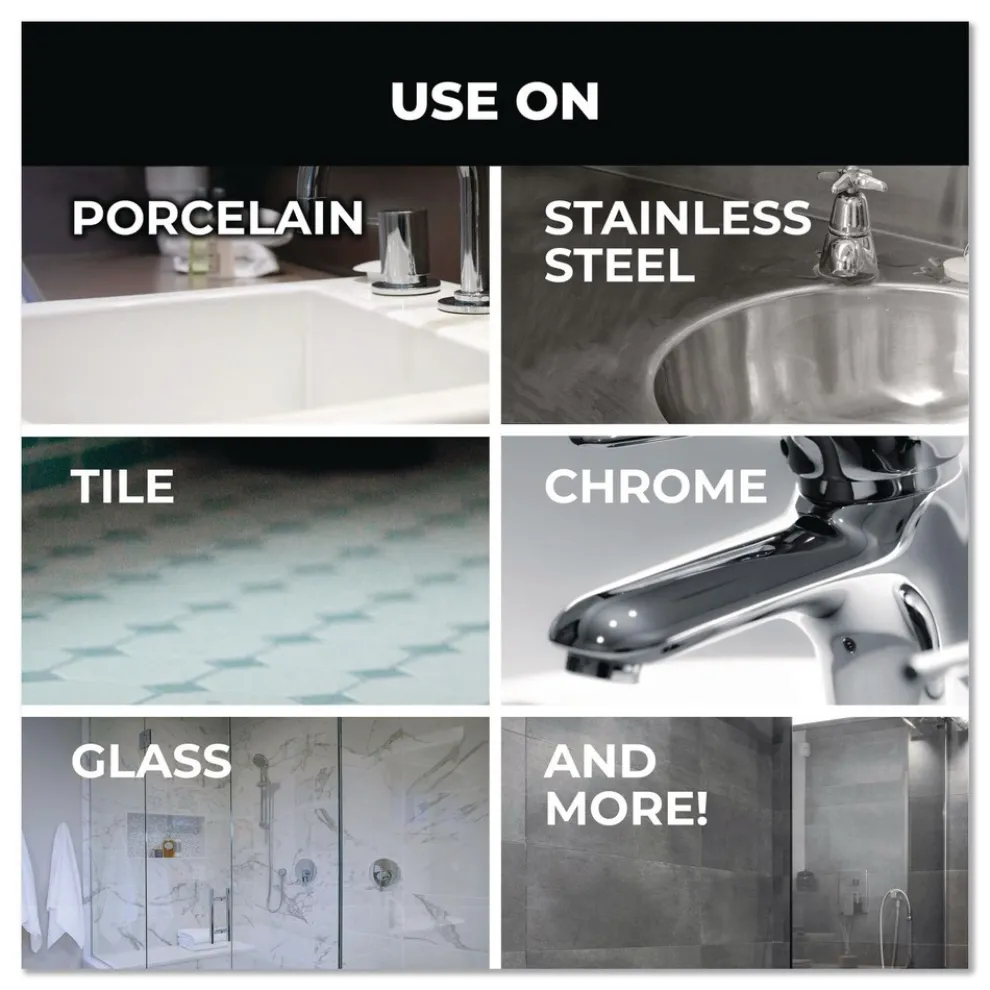 Ideal for use on porcelain, tile, glass, ceramic, stainless steel, chrome, aluminum, copper and more