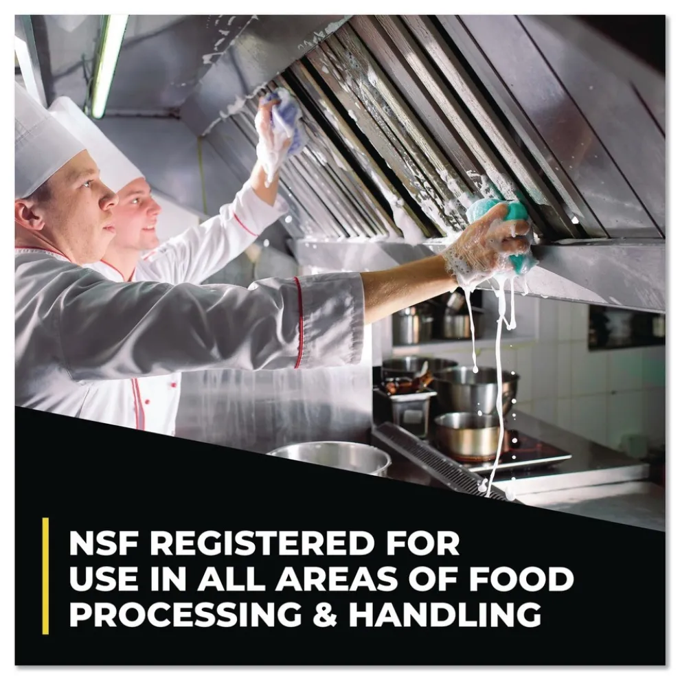 NSF registered A1, A2, A4, A8, B1, C1 for use as a general cleaner in all food processing facility areas including cooking and smoking equipment, appliances, floors, counters, walls, stoves and range hoods