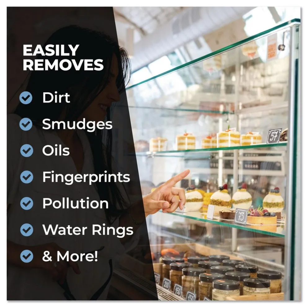 Effectively removes fingerprints, smudges, oils, pollution, dirt and grime from any glass surface