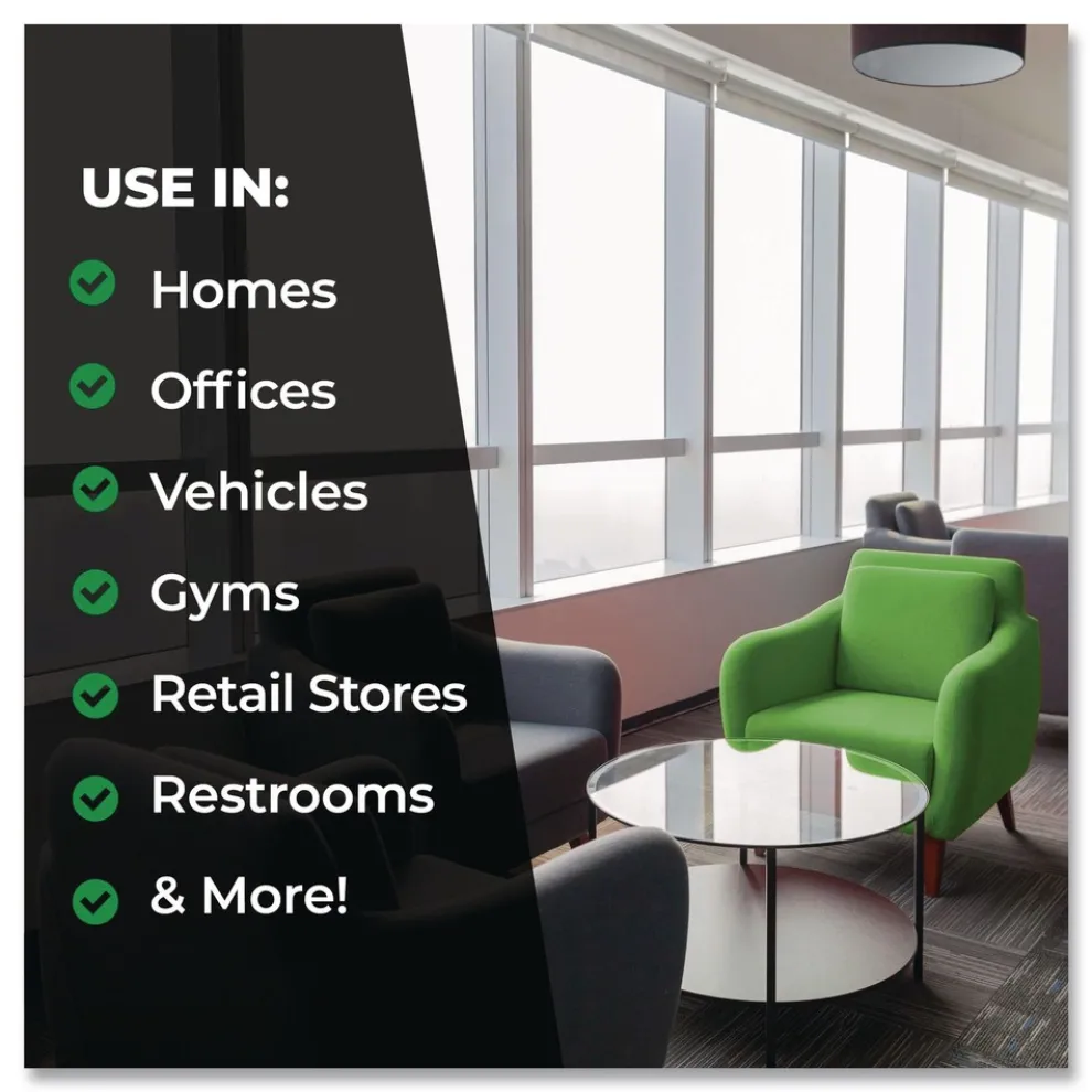 Ideal for use in homes, office buildings, restrooms, restaurants, retail stores, vehicles, public transportation, schools, gyms, spas and wherever odors linger