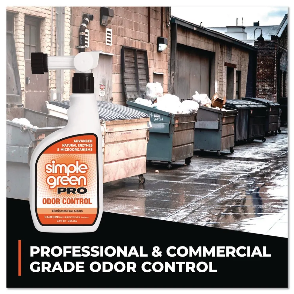 Simple Green Pro Odor Control neutralizes odors using advanced natural enzymes and microorganisms. The long-lasting, concentrated formula works on wet or dry surfaces, indoors and out. Use anywhere organic odors form. Neutralizes foul smells in public restrooms, fleet vehicles, dumpsters, farms, gyms, locker rooms, animal quarters, motels, schools and more. Eliminates odors caused by decayed vegetation, food, garbage, graywater, animals, manure, mold, mildew, skunk, sweat, urine, vomit and other stubborn smells. Keeps areas smelling fresh.