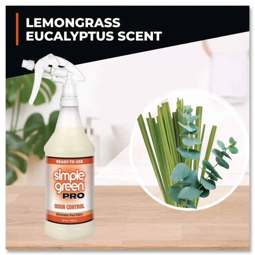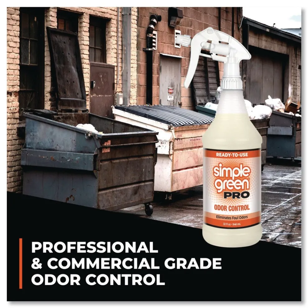 Simple Green Pro Odor Control Ready-to-Use neutralizes odors using advanced natural enzymes and microorganisms. The long lasting formula works on wet or dry surfaces, indoors and out. Use anywhere organic odors form. Neutralizes foul smells in public restrooms, fleet vehicles, dumpsters, farms, gyms, locker rooms, animal quarters, motels, schools and more. Eliminates odors caused by decayed vegetation, food, garbage, graywater, animals, manure, mold, mildew, skunk, sweat, urine, vomit and other stubborn smells. Convenient, ready-to-use trigger spray formula keeps areas smelling fresh.