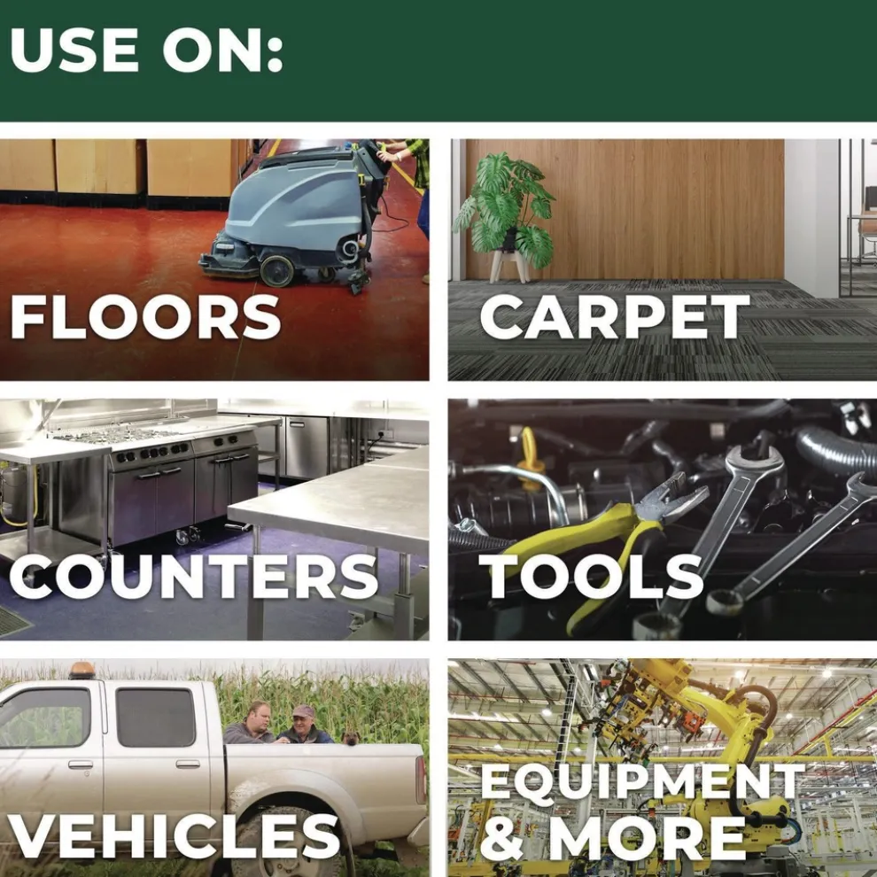 Simple Green Industrial Cleaner and Degreaser provides a safer alternative to caustic or acidic cleaners, bleaches and solvents. The trusted formula is non-abrasive and recognized by the U.S. EPA’s Safer Choice Program. Designed to be used on all washable surfaces, Simple Green powers away heavy dirt, grease, food residue and stains from countertops, sinks, tile, carpet, flooring, upholstery and more. The cost-effective concentrate can be used manually or in cleaning equipment such as such as floor scrubbers, dip tanks, carpet extractors, pressure washers, steam extractors and foamers. Easily cuts through tough grease, oils, cutting fluids, and built-up grime on equipment, engines, machinery, vehicles and manufactured parts making it ideal for a wide range of industries including janitorial, manufacturing, MRO, food processing, mining, automotive, transportation and engineering.