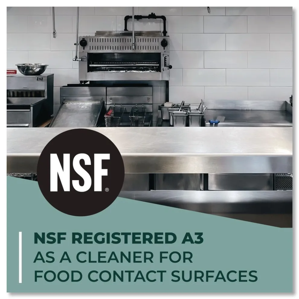 NSF registered A3 as a cleaner for food contact surfaces making it ideal for use around food processing facilities and equipment