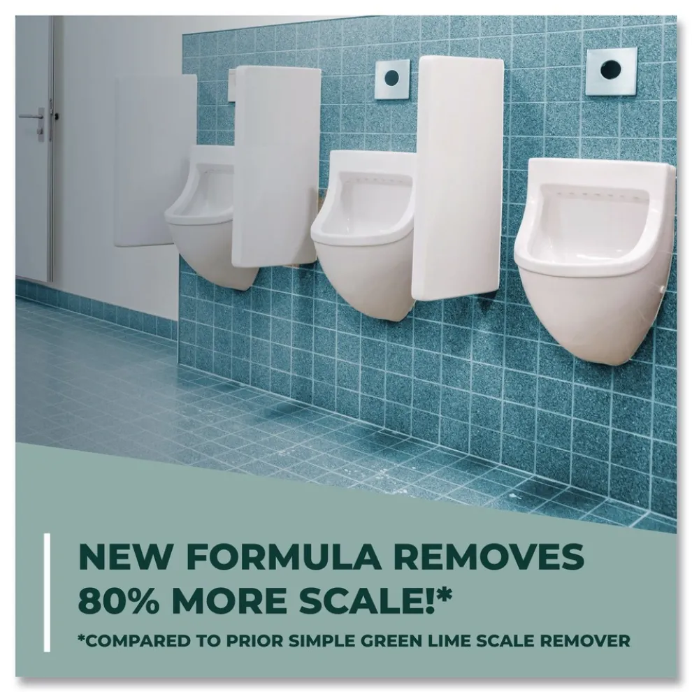 Simple Green Lime Calcium Surface Residue Remover is a powerful cleaner, degreaser, descaler, restorer, efflorescence and residue remover. NSF registered A3 as a cleaner for food contact surfaces making it ideal for use around food processing facilities and equipment. Easily removes lime scale, caustic and chlorinated cleaner residues, efflorescence, soap scum, mineral and organic deposits. Removes stains and restores clarity to stainless steel, chrome, aluminum, metals and other washable surfaces. Does not contain bleach, ammonia or phosphorus. Regular use prevents mineral deposit build-up to maintain plant asepsis.