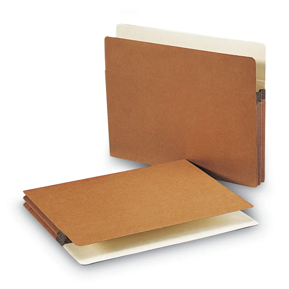 Manage bulky records with these sturdy file pockets that are available in a variety of expansions. The 6.5 in. high gussets are reinforced at top with rollover tear resistant material strip to make them virtually tear-proof. Back of pocket lined with 11 pt manila stock for added strength and easy identification of subject heading. Bottom and sides fully enclosed. Made of sturdy redrope stock.