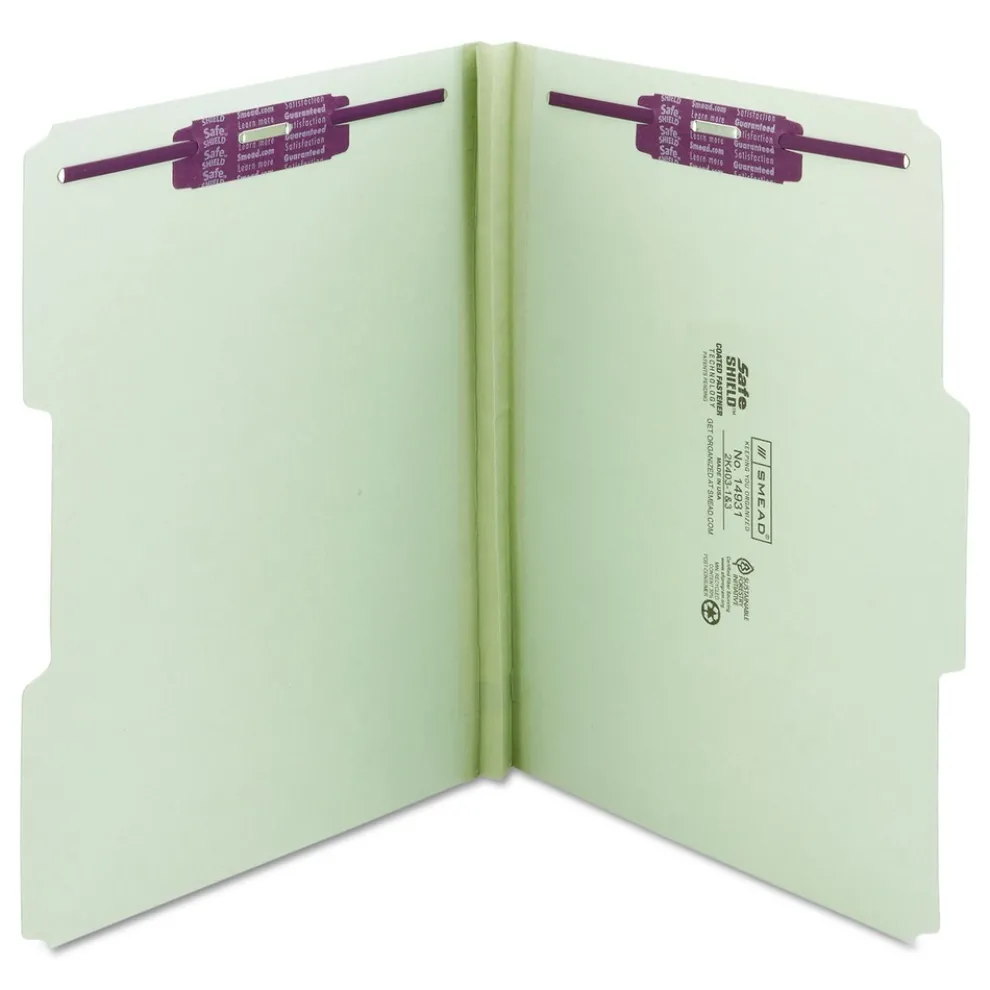 Smead 14931 1 in. Expansion Recycled Pressboard Folders with 2 SafeSHIELD Fasteners – Letter Size/Gray-Green (25/Box)