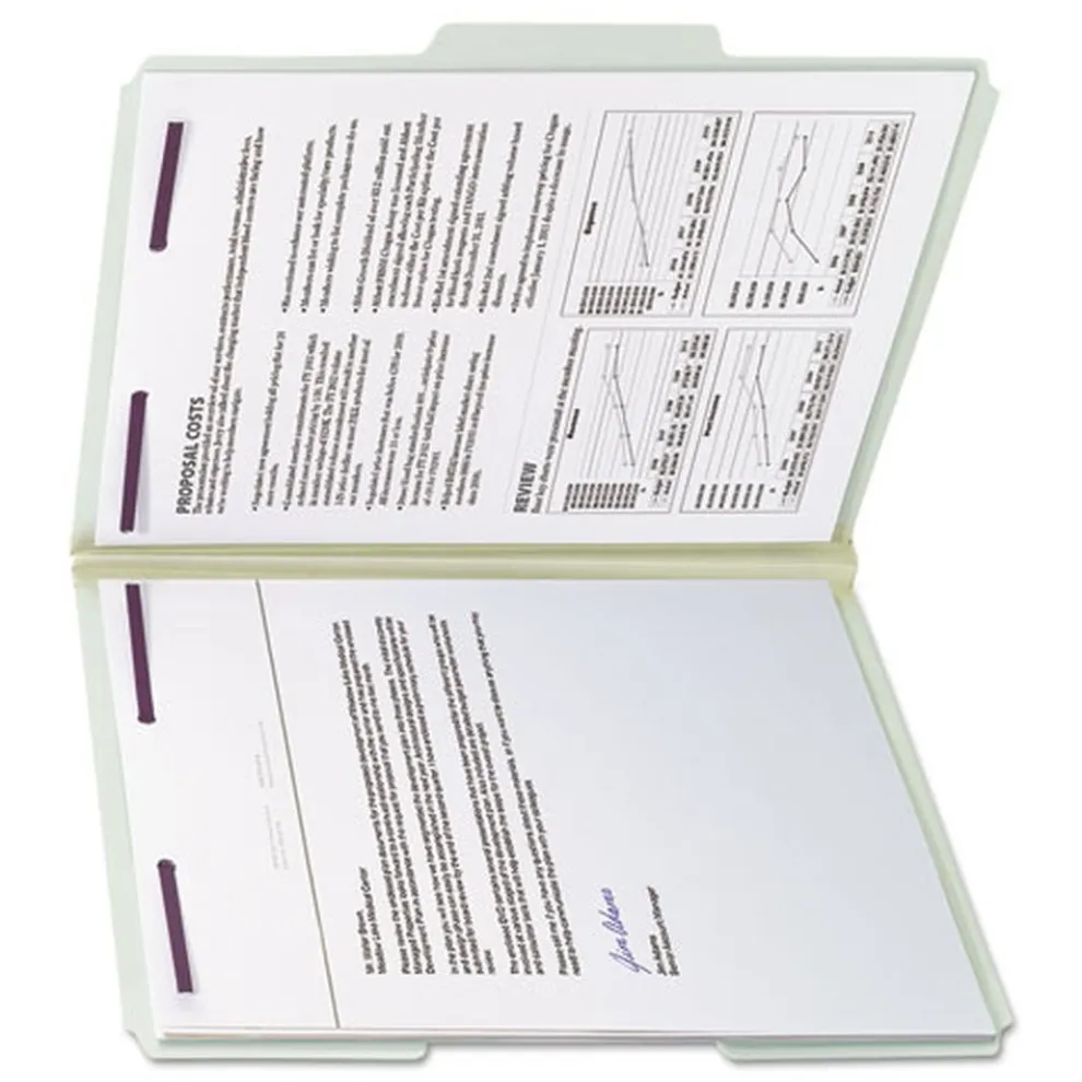 Protect your documents and fingers with Smead patented SafeSHIELD Coated Fastener Technology; the ultimate solution to fastener issues, including paper tears, finger cuts and excessive fastener crinkling. Made for large, bulky files that get plenty of use. Excellent for project files, loans, legal files or anytime you need to keep large amounts of paperwork in sequential order for frequent reference.