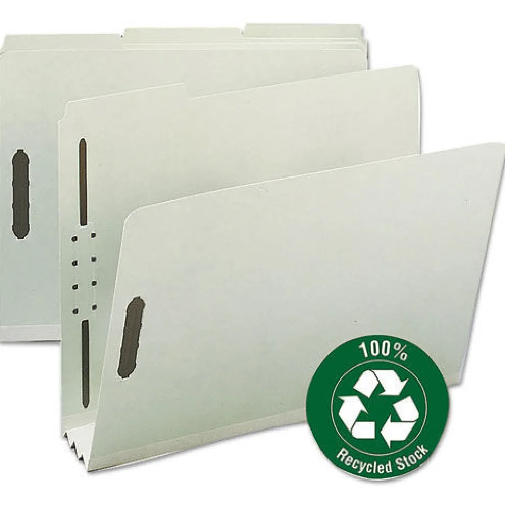 Smead 15005 3 in. Expansion 2 Fasteners Letter Size Recycled Pressboard Fastener Folders – Gray-Green Exterior (25/Box)