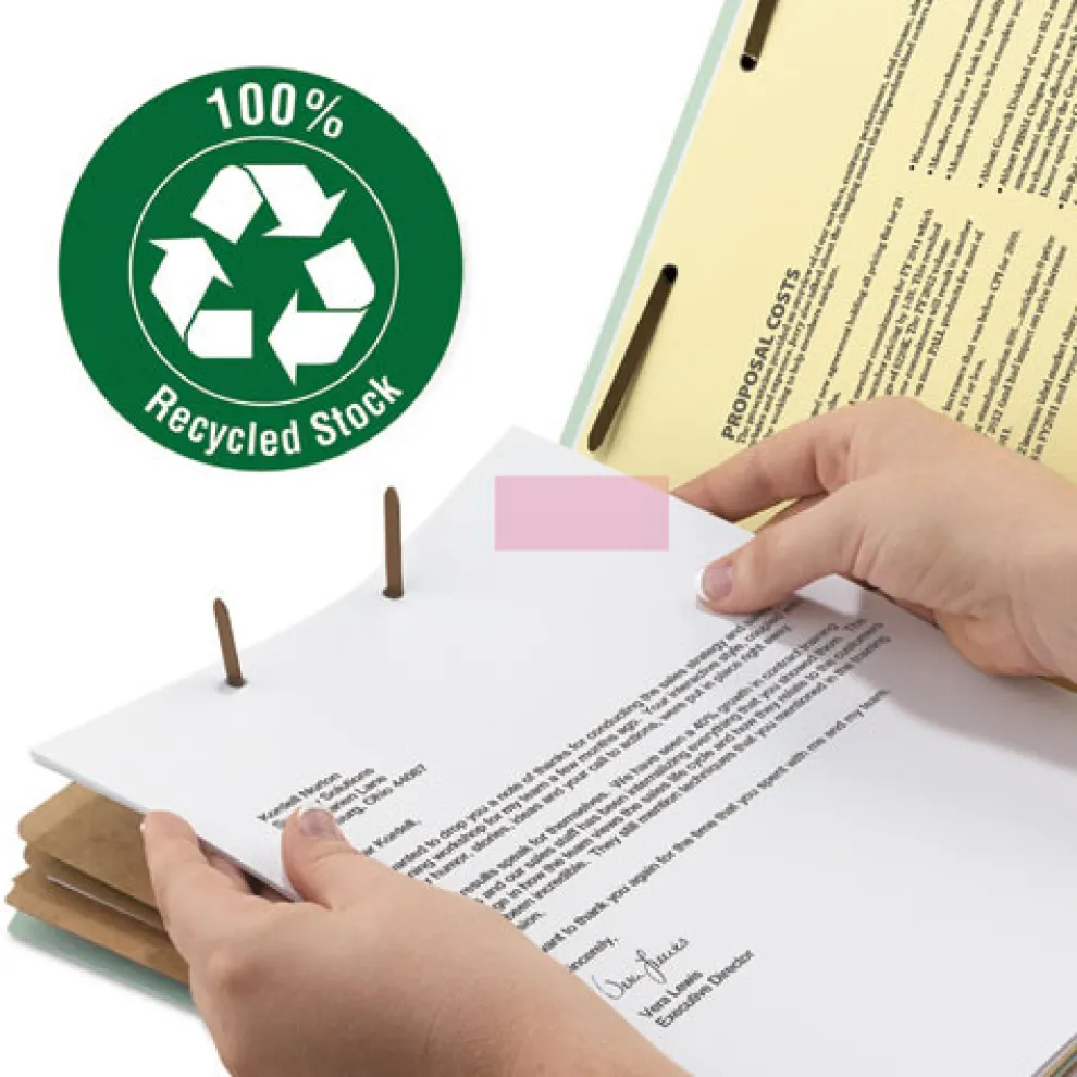 Minimize the time you spend searching for documents and increase the efficiency of your filing system. These 100% recycled pressboard classification file folders enable you to organize your critical information by providing multiple filing surfaces that can be used to separate your documents in subcategories and keep them in proper sequence. Ideal for offices looking to become more sustainable. Perfect for using with drawer filing systems, they feature a 2/5-cut tab in right of center position and are compatible with our Viewables Multipurpose Labels (sold separately).