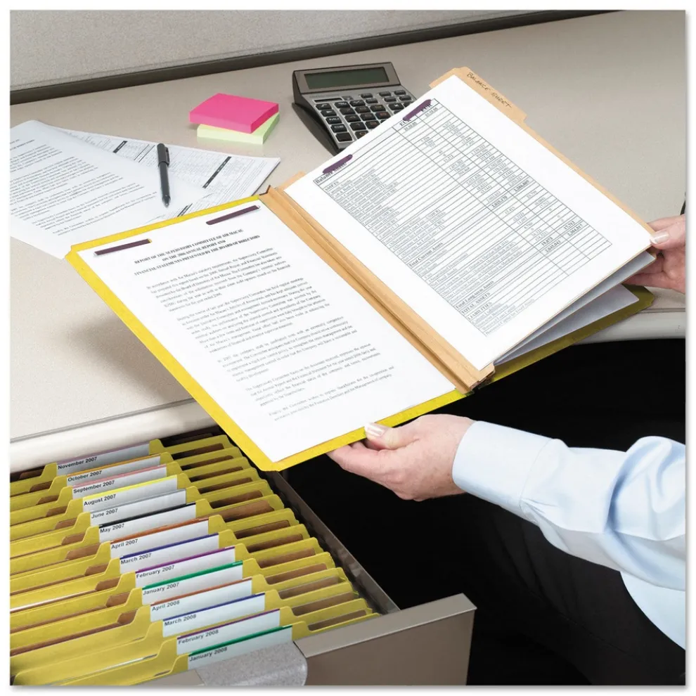 Protect your documents and fingers with Smead patented SafeSHIELD Coated Fastener Technology; the ultimate solution to fastener issues, including paper tears, finger cuts and excessive fastener crinkling. Use colors to signal category or type of project at a glance. Sturdy tear resistant gusset expands to hold up to 3 in. of material. 3 dividers provide 8 filing surfaces for ultimate organization.